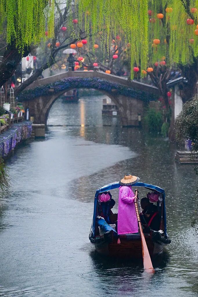 如今,春风唤醒了周庄古镇,这时适宜坐在临河的石阶上听橹声,漫步石板路,感受地道的江南烟火气。