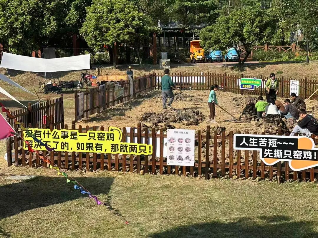 窑鸡在土里慢慢煨着,香味需要时间酝酿,这一个多小时,正好用来解锁乐园里的各种玩法。