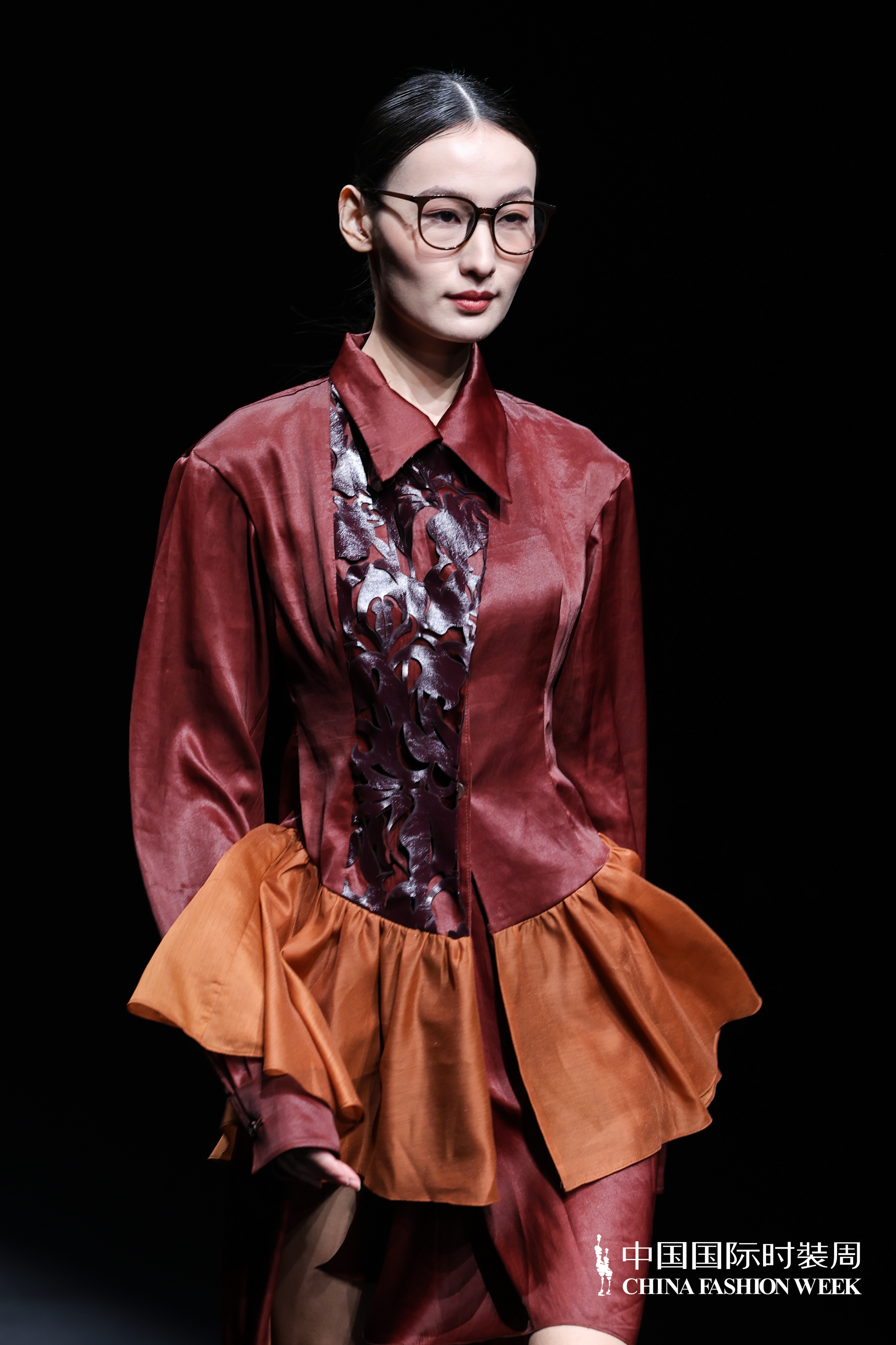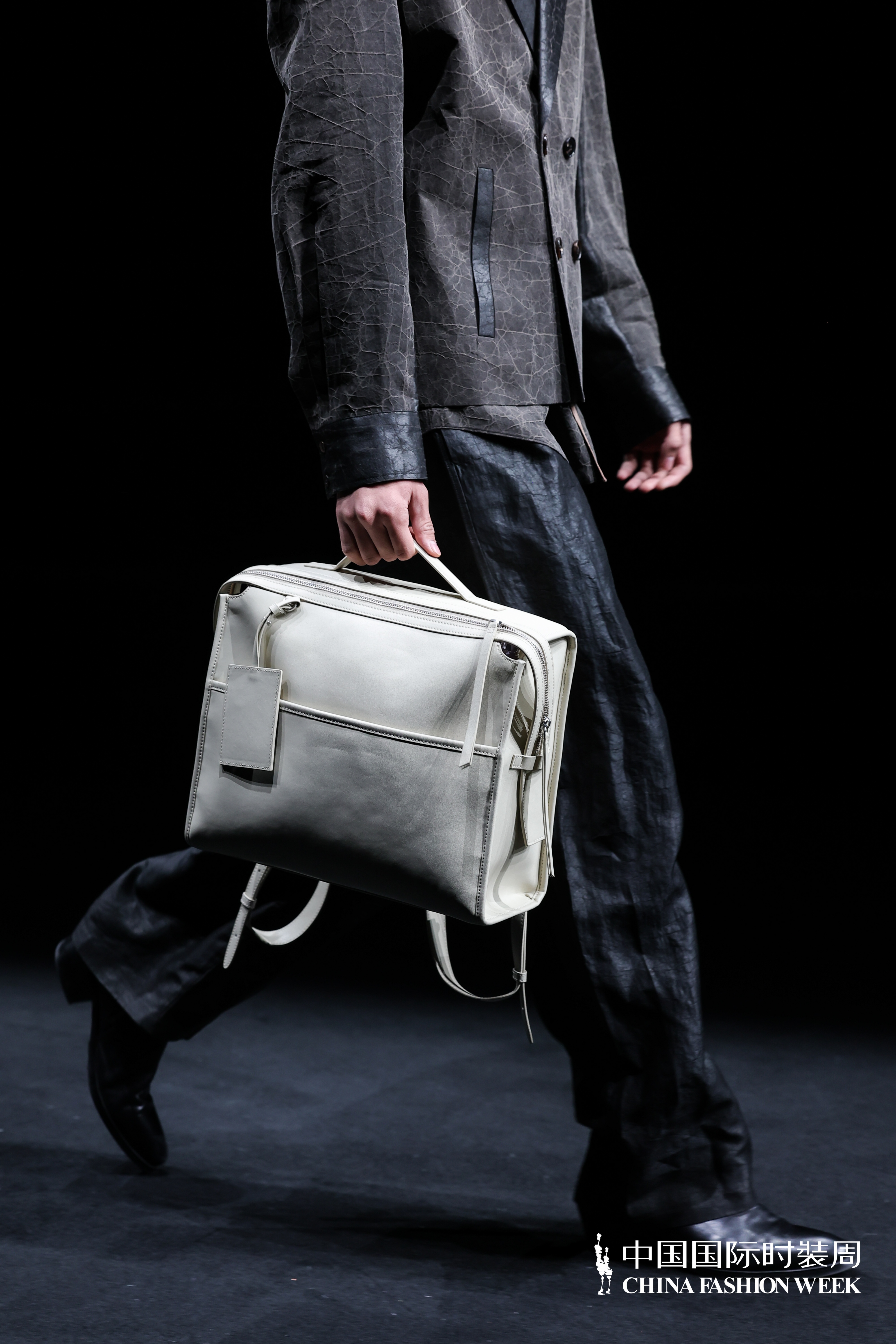 在工艺层面,系列将剪纸纹样转化为数字图形,运用激光雕刻工艺应用于环保皮革之上,使传统手工艺在工业语境中获得新的生命形态。无水印花工艺则为香云纱带来另一种层次,面料不再依赖明确的图案叙事,而是在肌理与光泽的变化中显现细节。