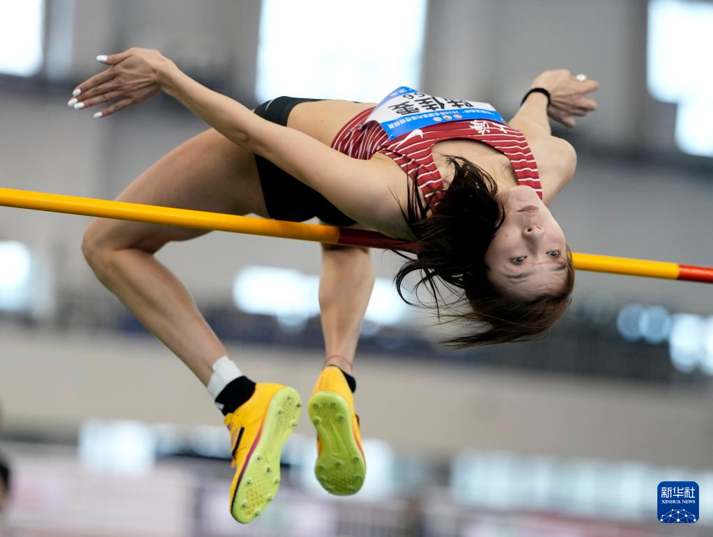 3月28日,北京队选手金若宣在女子跳高决赛中试跳。她获得亚军。