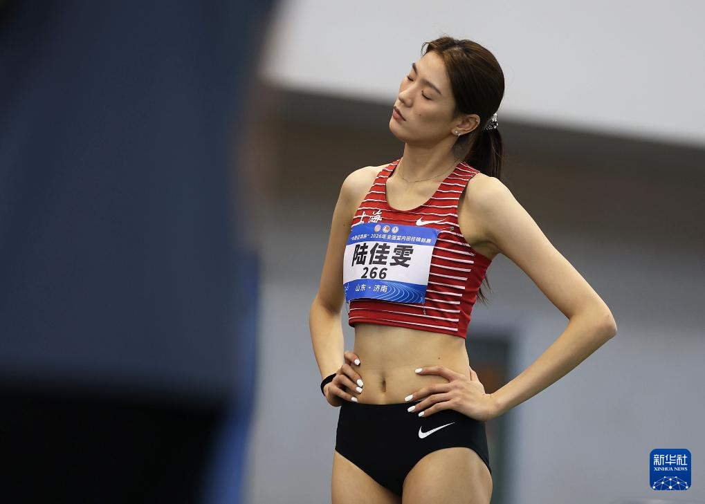 3月28日,上海队选手陆佳雯在女子跳高决赛间隙。她获得冠军。