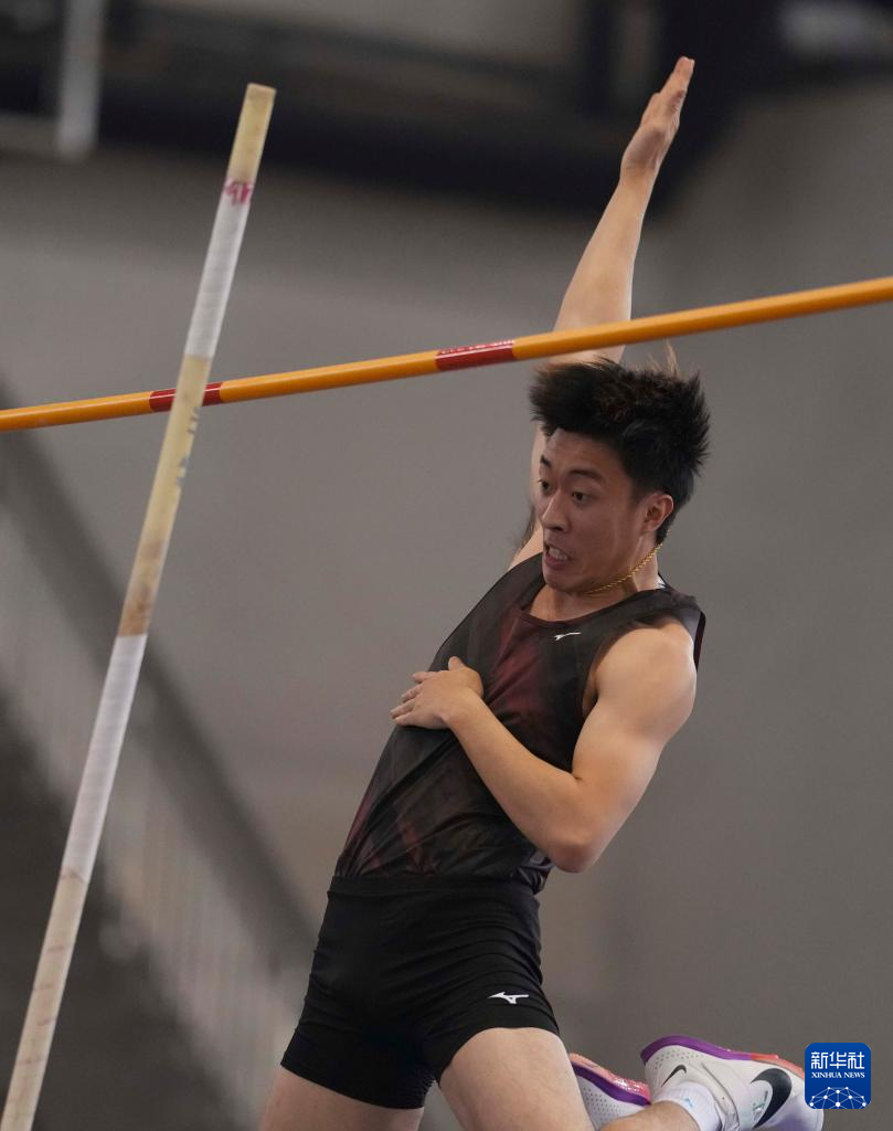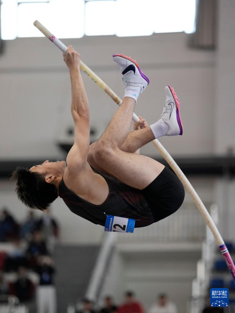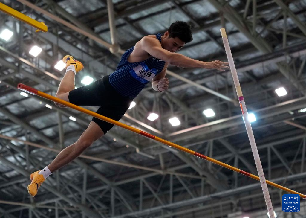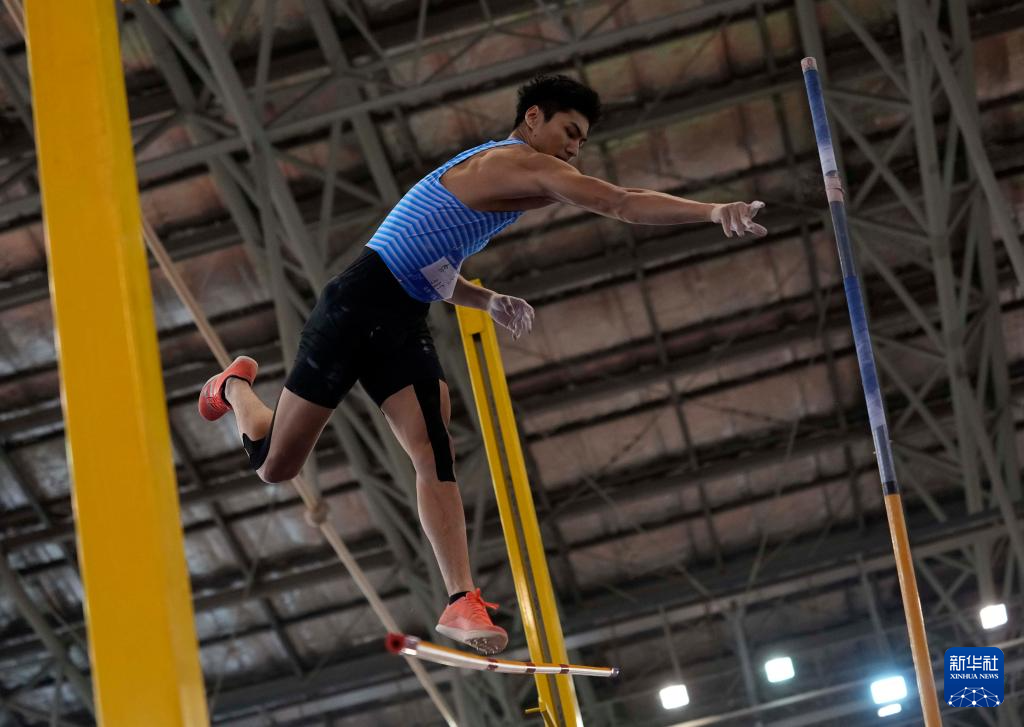 3月28日,个人选手卓家玄在男子七项全能撑杆跳高比赛中。