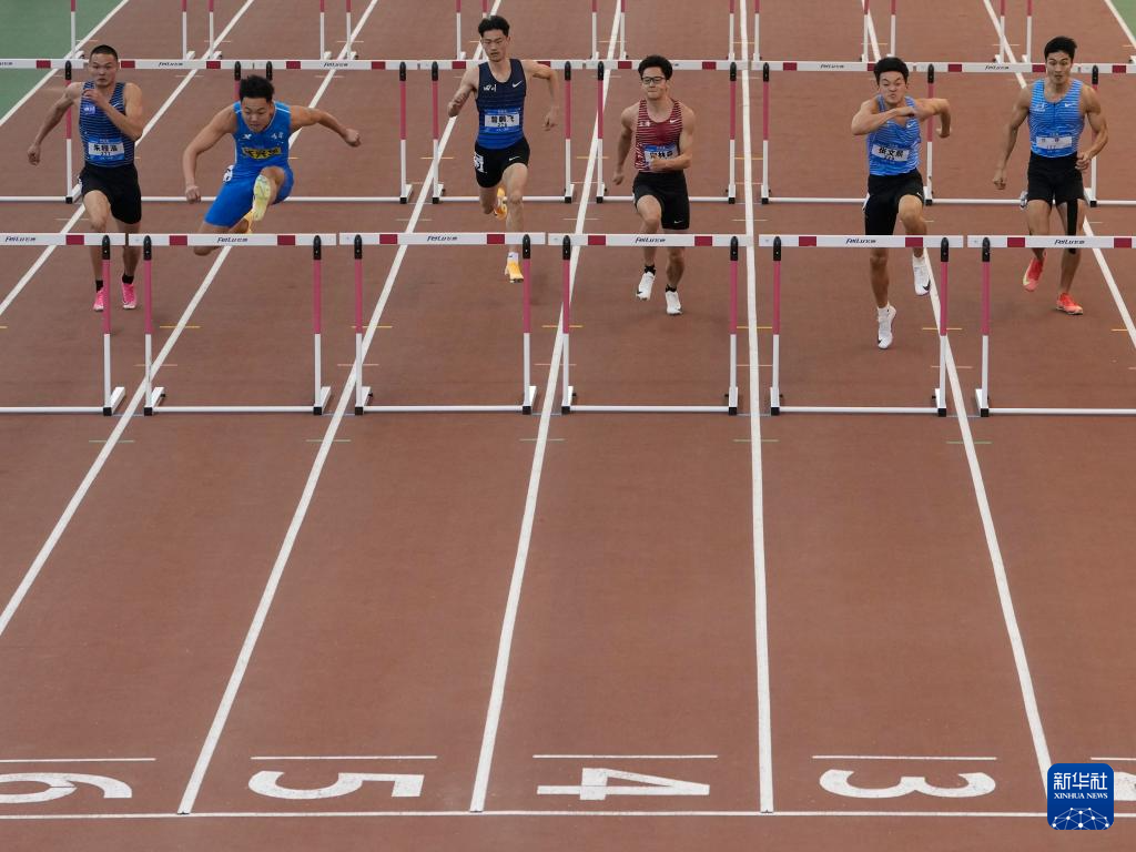 3月28日,吉林队选手陈兴华(左一)在男子七项全能60米栏比赛中。