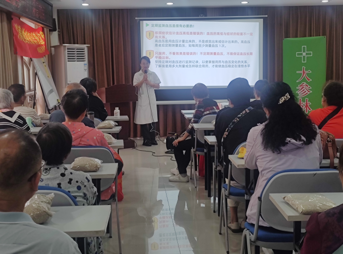 3月25日,社区联动智慧邻里服务中心开展“关爱银龄 健康同行”长者微课堂,特邀大参林志愿者为居民带来“合理膳食,科学降压”专题讲座,通过膳食宝塔模型讲解油盐糖推荐摄入量、分享控盐小技巧,还组织居民手工制作艾草枕,在互动中拉近邻里距离。