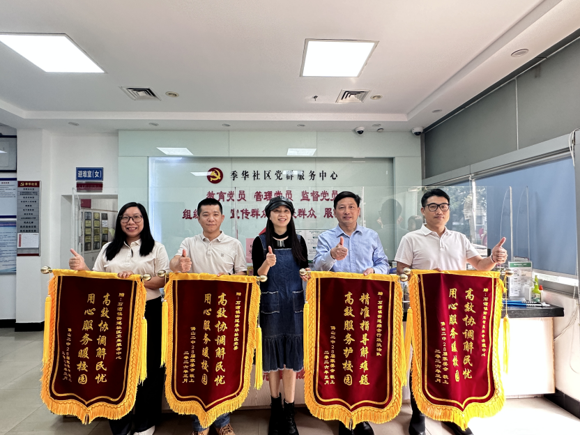 季华社区紧盯民生实事,以实干解民忧、暖民心,扎实开展各类暖心服务。针对佛山二中与季华花园四期之间树木遮光、滋生蚊虫的长期难题,社区主动牵头,启动“村居吹哨、部门报到”机制,积极协调街道执法、治理中心等多部门到场勘查,快速制定处置方案并规范施工,高效解决了困扰师生和居民许久的烦心事,获得大家的一致认可。3月24日,佛山二中第28届家委会向季华社区赠送锦旗表示感谢。