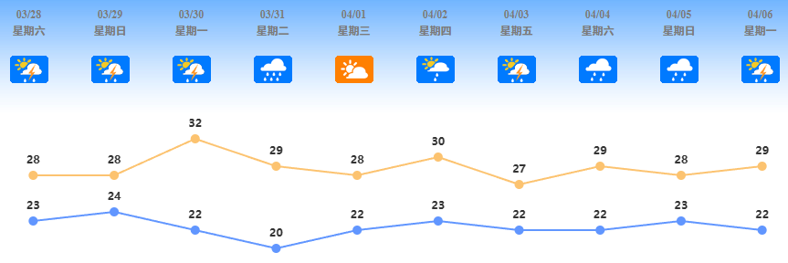 预计佛山市28-29日转有雷阵雨;展望30-31日受高空槽和弱冷空气影响,雷雨增多,并伴有短时强降水和雷雨大风等强对流天气。佛山市即将进入强对流多发季节,各位市民需注意做好防御。