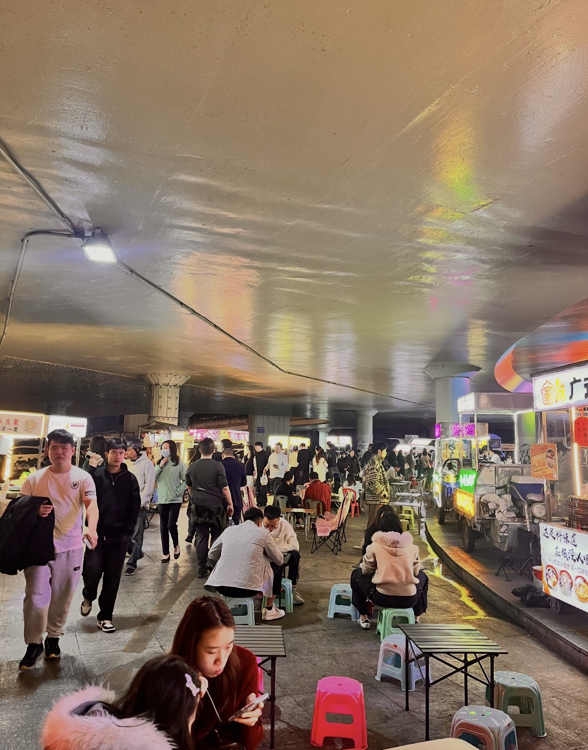 白天是车流不息的立交桥,入夜便化身最接地气的宵夜江湖。这里没有精致的装潢,只有折叠桌、塑料凳和扑鼻的镬气。