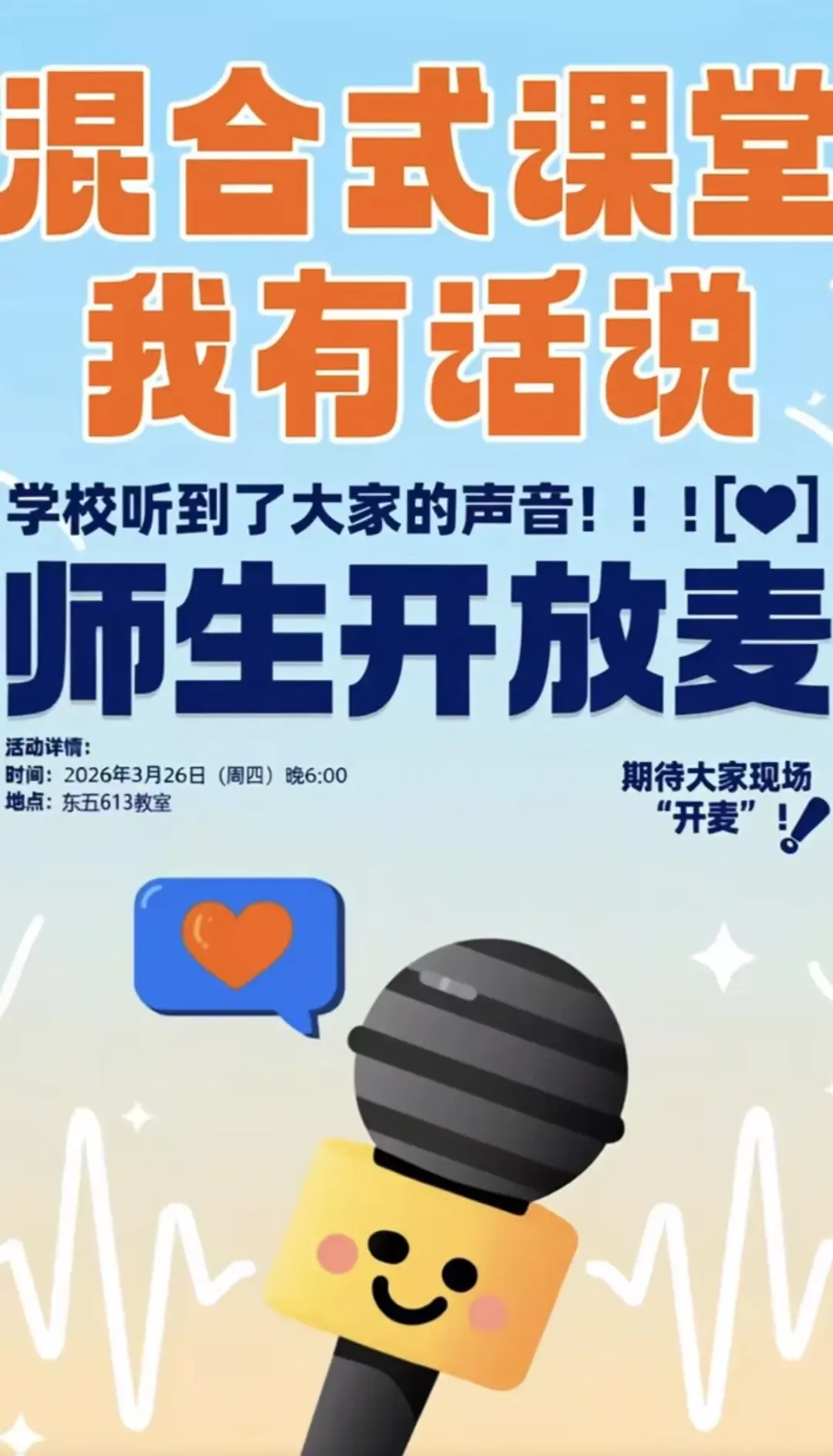 记者注意到,学校官方账号同样表示,将在线下设置“开放麦”,供师生就“混合式课堂”进行讨论。