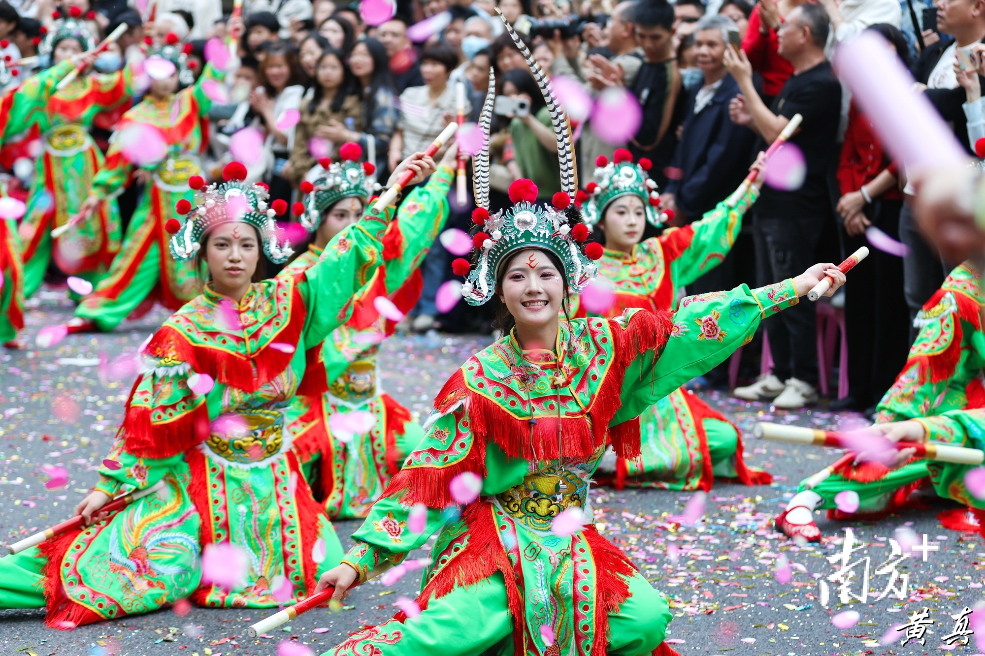 这种“势”,产生多重效应——形成规模效应,数十支队伍、数千名参与者同场呈现,营造出强大的视觉冲击和文化感染力;产生联动效应,英歌、笛套音乐、醒狮、标旗在巡游中交替出现、相互呼应,形成一种“文化交响”;激发传播效应,万人空巷的巡游,天然具有传播力。