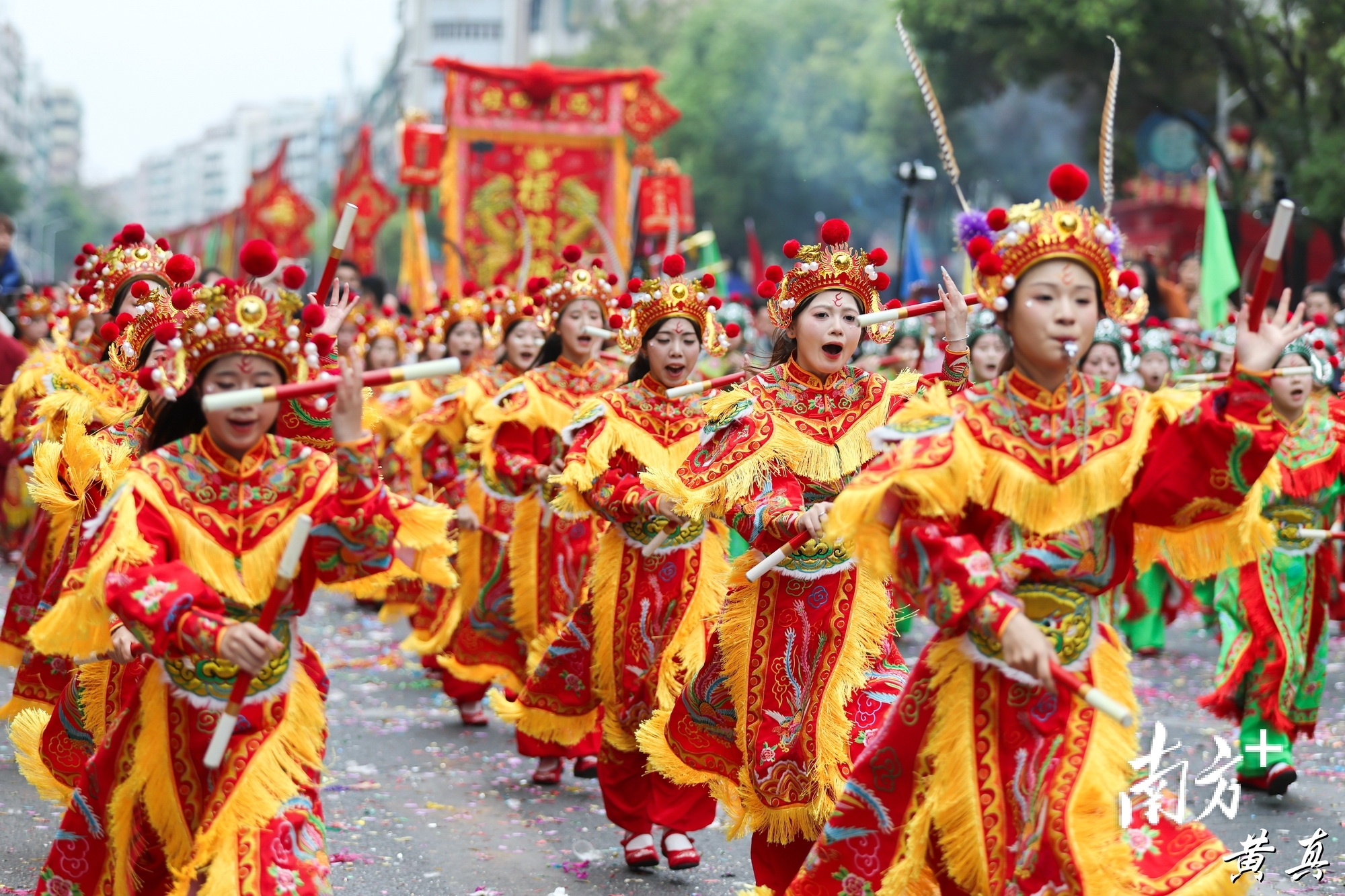 每一届双忠文化节,不是封闭的庙内仪式,而是开放的全城巡游。就说本届活动,16公里的线路,穿越文光、棉北、城南三个街道的主要干道;从清晨6时到傍晚6时,整整12小时的流动盛宴;数千名参与者的表演,数万名观众的注目。