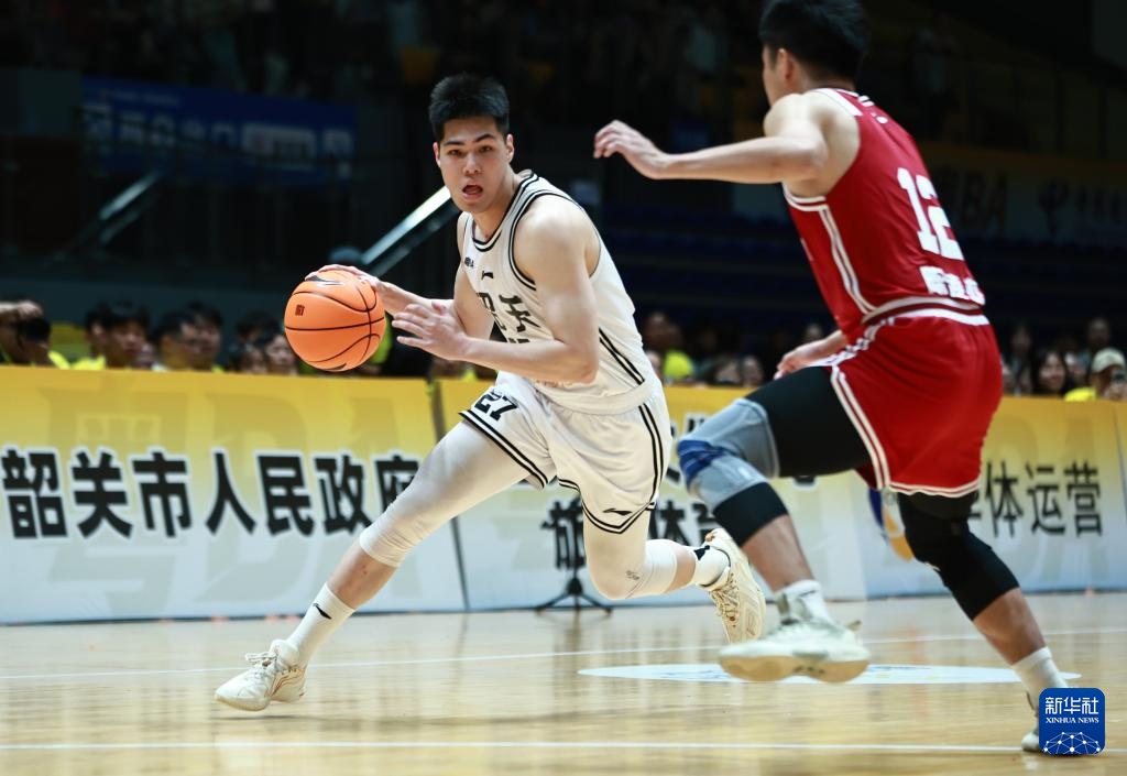 3月28日,韶关队球员李涛(右)在比赛中突破。