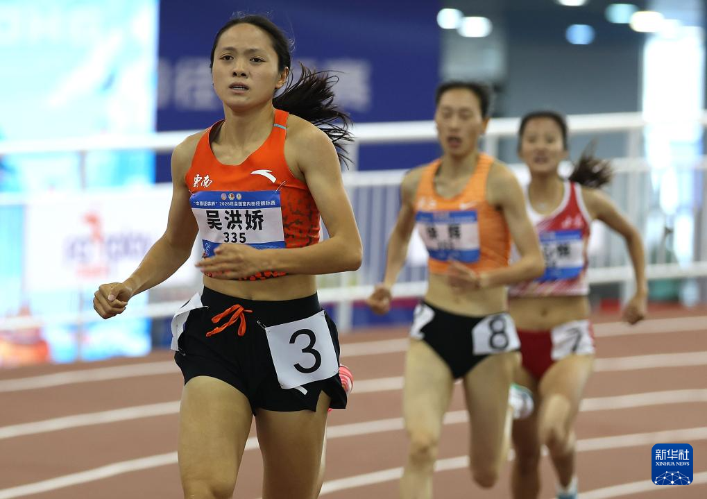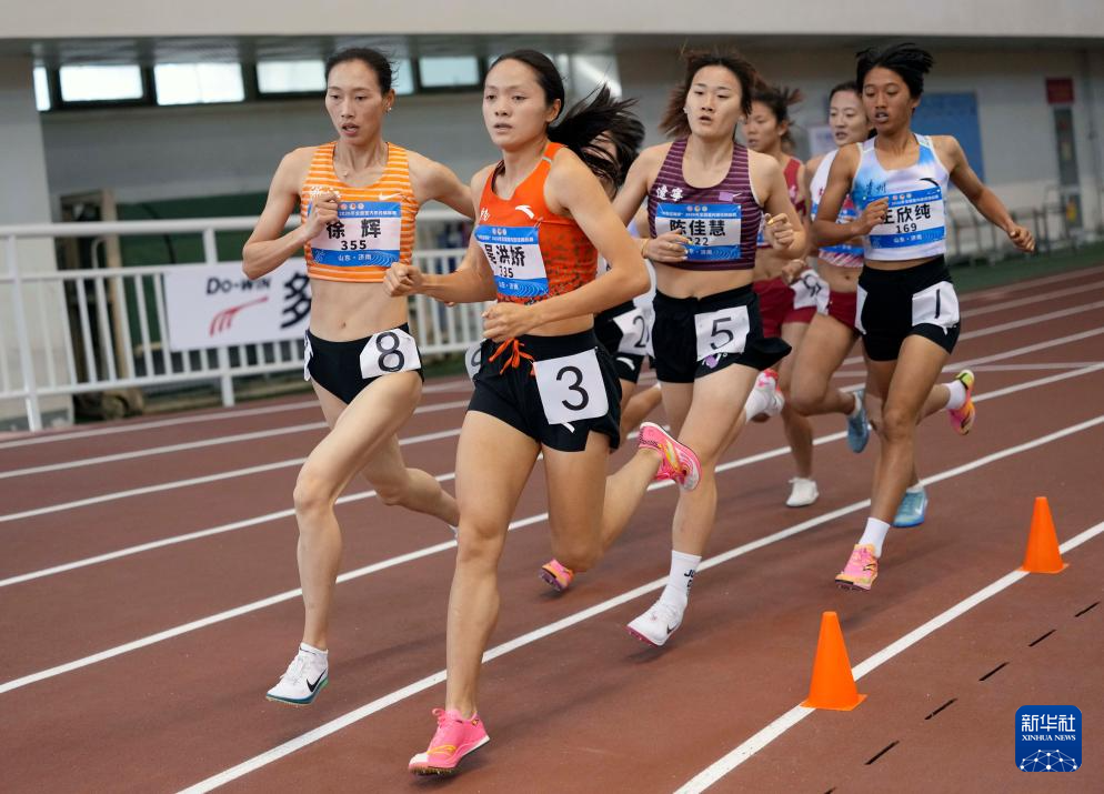 3月28日,2026年全国室内田径锦标赛女子1500米决赛在山东济南举行。