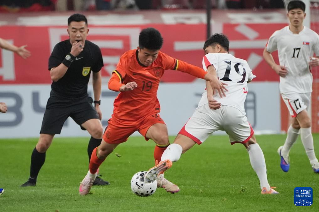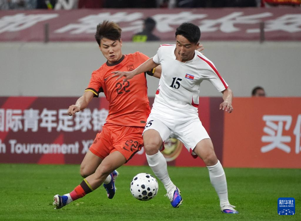 3月28日,在陕西西安举行的2026CFA中国之队·“丝路欢乐世界”西安国际青年足球锦标赛第二轮比赛中,中国U23队1比1战平朝鲜U23队。