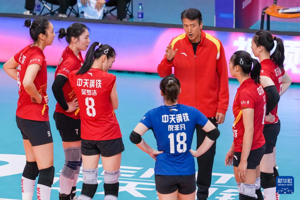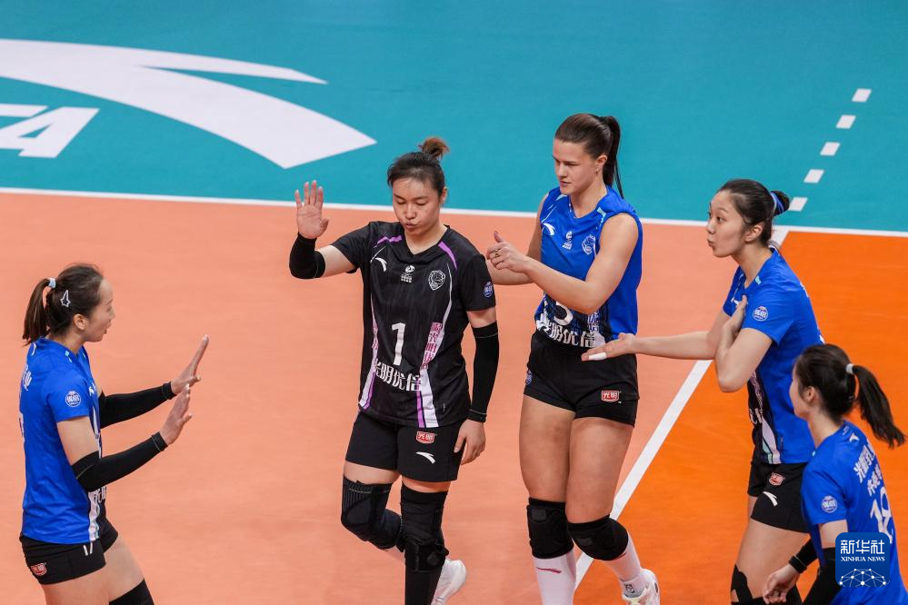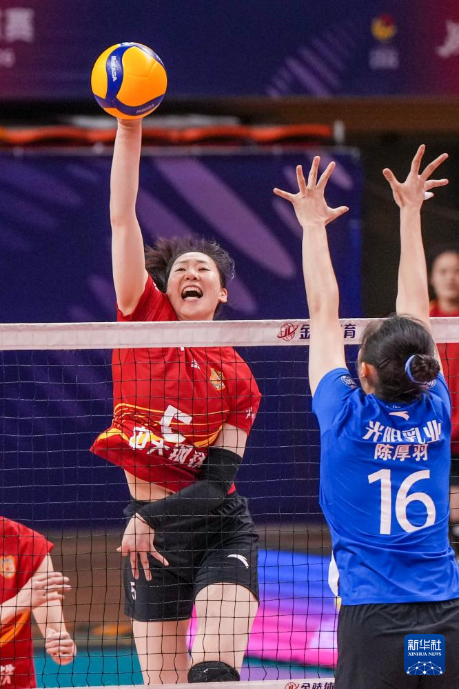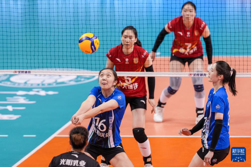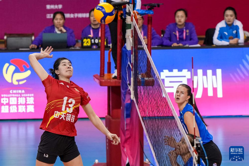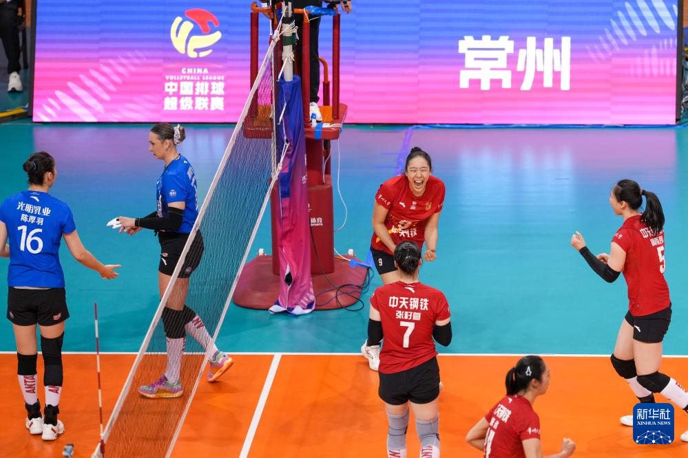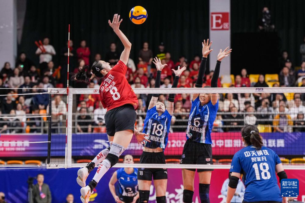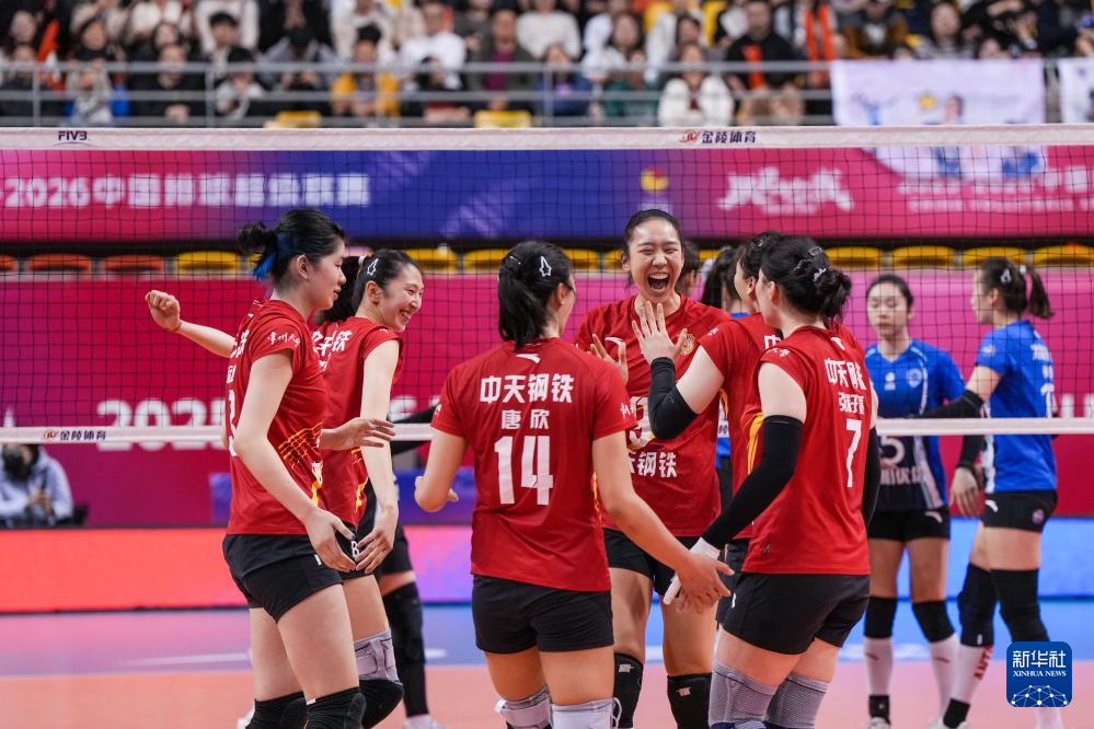 3月28日,在2025-2026赛季中国女子排球超级联赛总决赛冠亚军决赛首回合比赛中,江苏中天钢铁队主场3比0战胜上海光明优倍队。