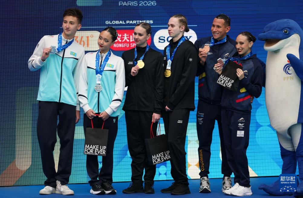 当地时间3月28日,2026年世界泳联花样游泳世界杯巴黎站混合双人技术自选决赛在法国巴黎举行。