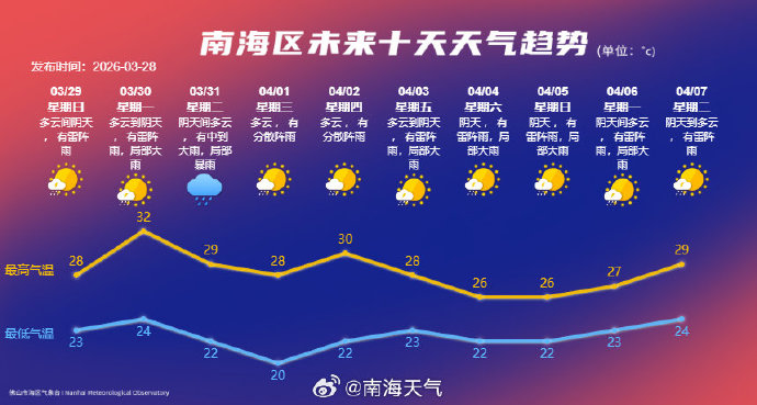 2026年3月29日13时51分 南海区气象台 发布全区暴雨黄色预警信号 丹灶、狮山、里水、大沥 雷雨大风黄色预警信号升级为橙色 新增桂城、大沥冰雹橙色预警信号 预警!南海这些区域有冰雹! 南海区气象台发布 强雷雨、强阵风和局地龙卷预警 预计未来1小时大沥、桂城、里水 可能有12级大风和局地龙卷 南海区气象台2026年3月29日14时58分 把大沥、里水雷雨大风橙色预警信号升级为红色 桂城雷雨大风黄色预警信号升级为红色。预计未来1小时我区狮山、大沥,里水强降雨持续,南海区气象台2026年3月29日15时16分将狮山、大沥,里水暴雨黄色预警信号升级为橙色,区应急管理局、区气象局提醒您:请注意防御暴雨可能引发的城镇内涝、山体滑波等灾害。 请各位街坊停止户外活动和作业 迅速做好大风、雷电的防御工作 厂房顶棚和防风能力差的其他建筑物的业主 应尽快组织人员撤离 根据气象部门的最新预报 这样的天气 还将持续! 随身带伞的季节又到了! 大家要提前做好 防范强对流天气的措施 据南海区气象台消息,预计3月30日至3月31日受高空槽和弱冷空气共同影响,有中到大雨、局部暴雨降水过程,雷雨时伴有短时强降水、8~10级短时大风和局地冰雹等强对流天气;展望4月1日至4月2日降雨减弱,有阵雨。具体预报如下: 出门务必及时关注 最新预报预警信息 做好防护 远离气象灾害风险较高的地区 遭遇强对流天气 该怎么办? ↓↓↓ 掌握狮山最新资讯↓ 来源:应急管理部、广东天气、南海发布 编辑:狮宣 分享 点点赞