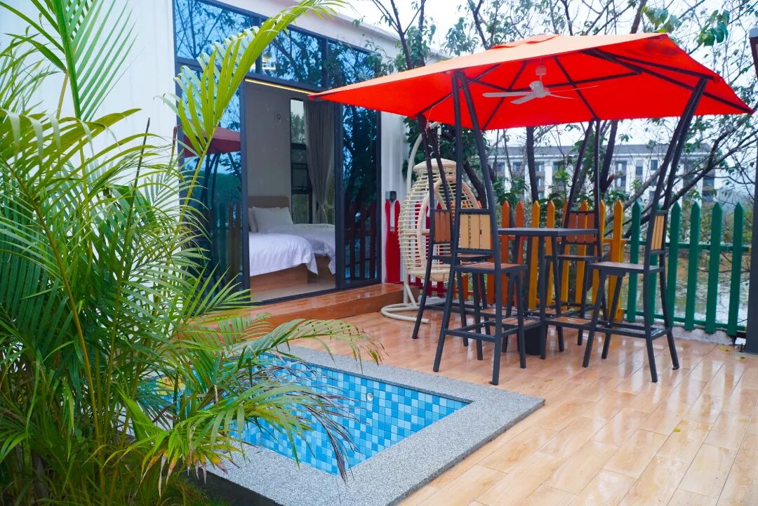 可住2大1小(小是指1.5米以下儿童)独立庭院 私家泡池