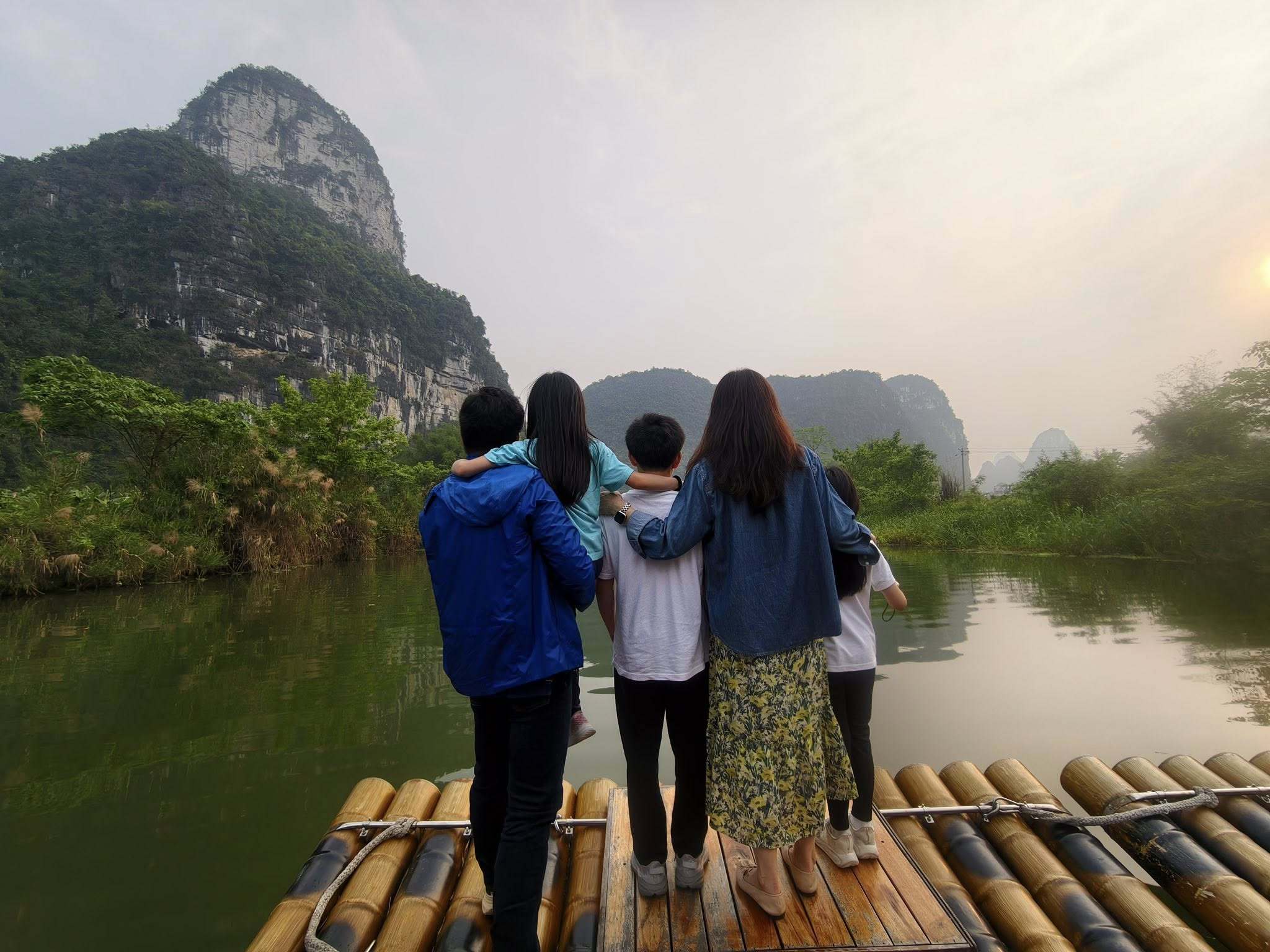 霍启刚与妻子郭晶晶带着3名子女,一家五口到广西旅游。