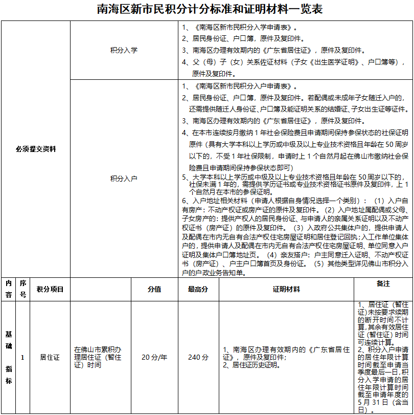 根据《 南海区新市民积分计分标准和证明材料一览表》提交其他积分项目佐证材料原件及复印件。