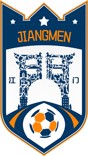 视觉核心为汇聚江门特色元素的品牌化“門”字,一枚足球从中劲射而出,构成强烈动感焦点。整体设计将静态文化符号转化为充满张力的运动叙事,成为承载城市认同、迸发体育激情的视觉标志。