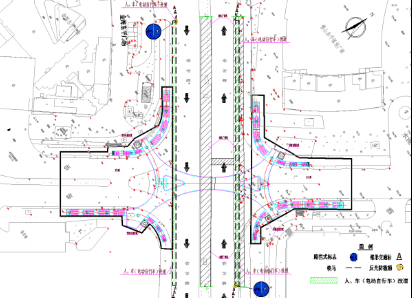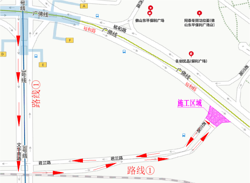 非机动车需绕行裕和路主道。施工期间,将在裕和路靠近金海东平广场、国潮公园、保利东景花园、佛山东平保利广场路段设置跨栏,新增非机动车道,保障非机动车通行。
