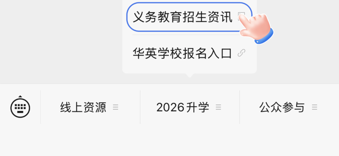 ②点击底部菜单栏【2026升学】-【义务教育招生资讯】。