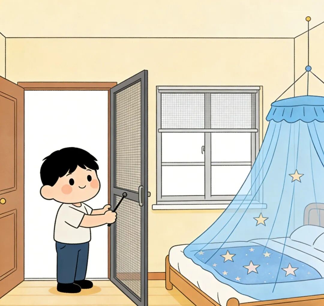 1. 建议安装纱门纱窗,使用蚊帐,在纱窗上喷洒杀虫剂效果更佳,为自己打造一个安全的“无蚊空间”。