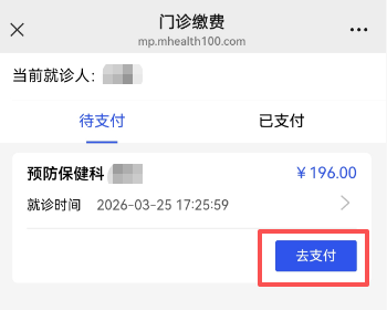 4.绑定完成后,找到待支付的疫苗费用订单,点击“去支付”,完成付款即可。