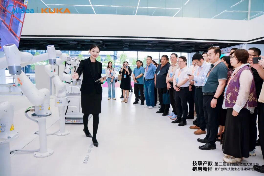 会前,参会人员实地观摩了链主企业——库卡机器人(广东)有限公司(以下简称“库卡”)产教评技能生态链建设情况。