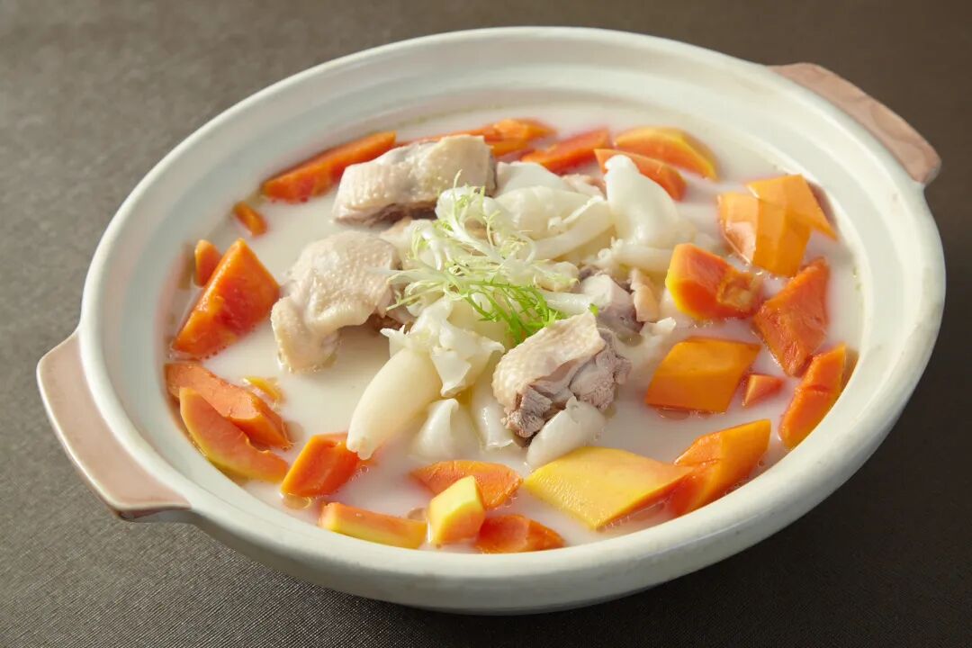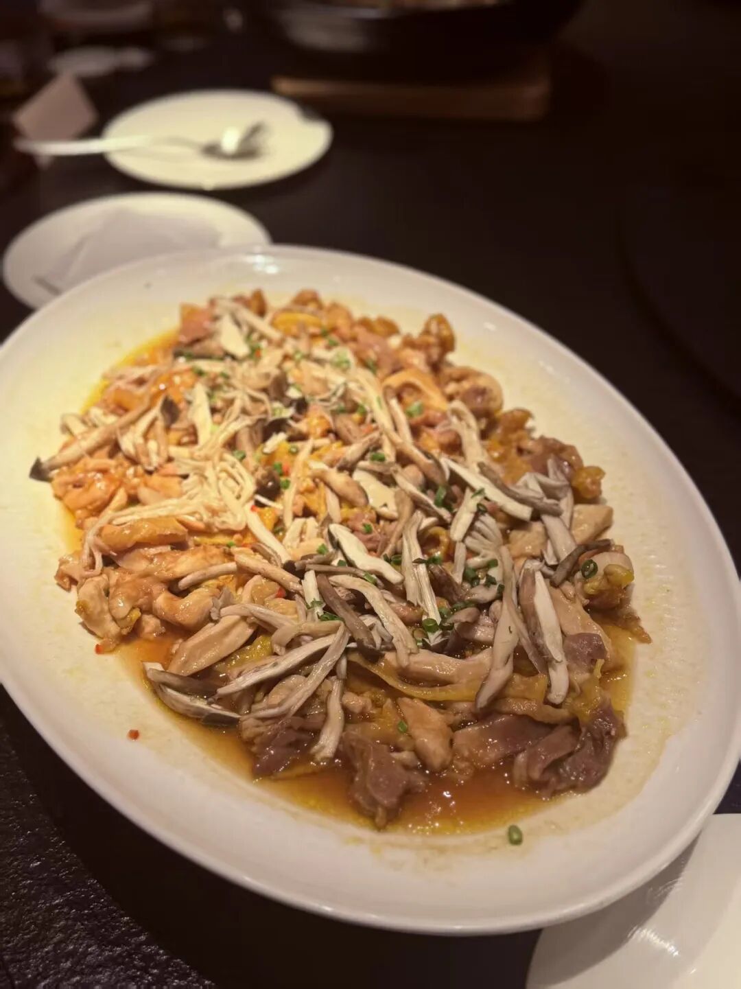 花胶木瓜浸鸡:永生宴汇的花胶木瓜浸鸡,则把广东人“医食同源”的智慧再升一阶——精选深海花胶,满口胶质Q弹不腥;当季熟木瓜入锅慢煮,自然清甜渗透汤底;搭配现宰走地鸡,肉质紧实不柴,鸡汤入口先是清润,而后回甘,每一口都是胶原蛋白。先喝汤,再吃肉,最后涮菜,胶质浓到挂嘴唇~关键不用排队啊!环境舒服,价格还亲民。来永生宴汇吃“不用抢的鸡煲”。花普通煲的钱,吃养生宴的享受。