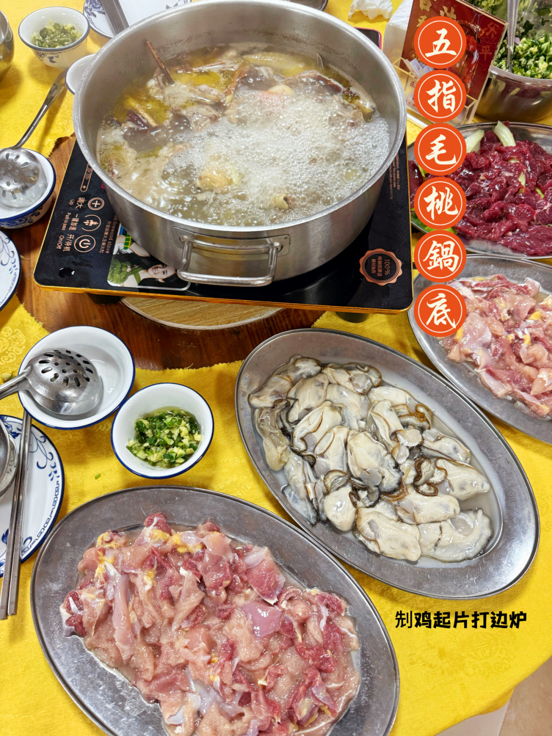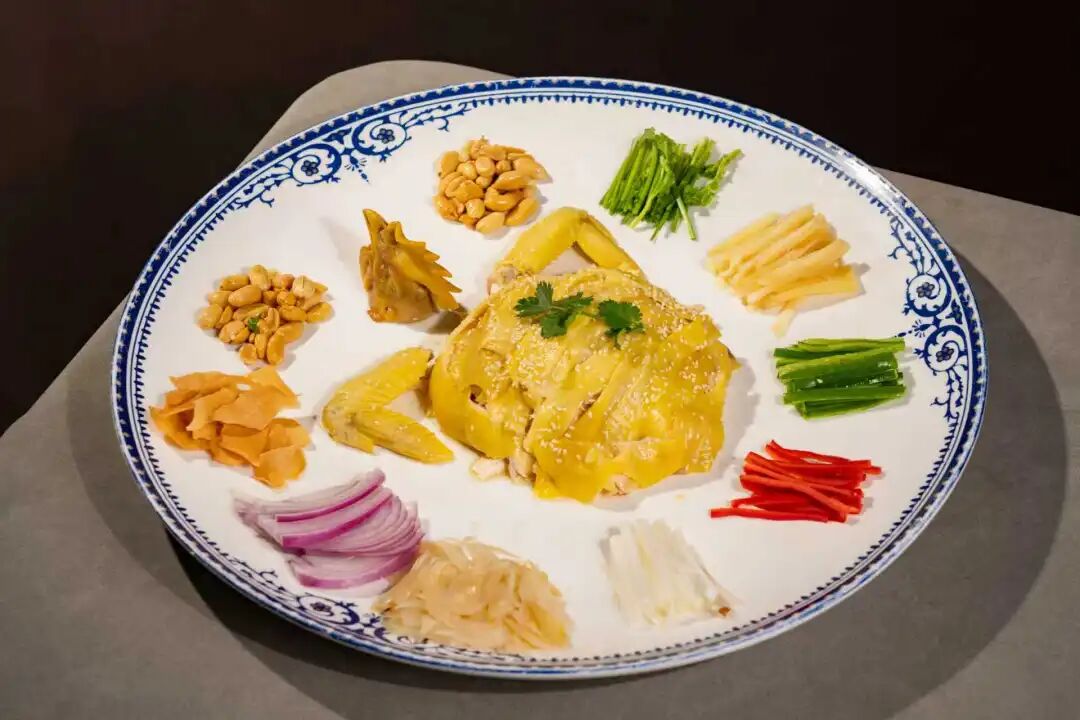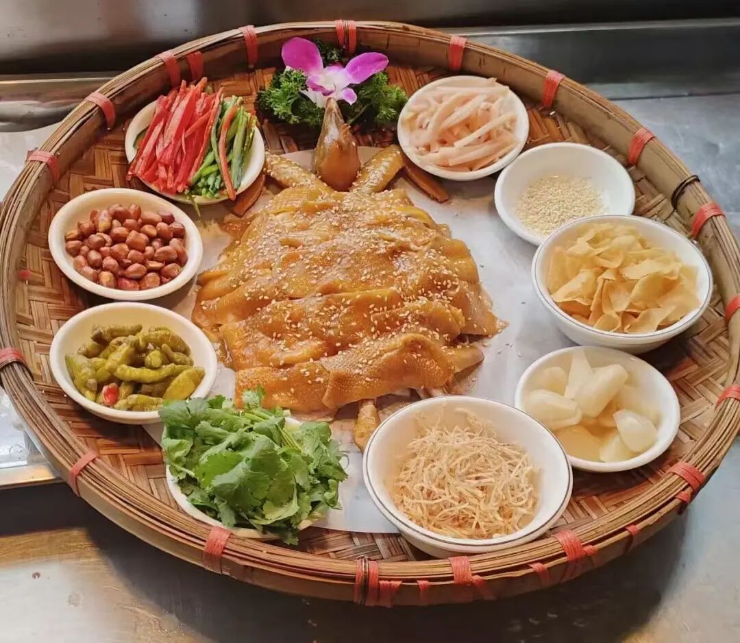 发财捞鸡:拆骨手撕鸡肉,搭配青瓜、洋葱、姜丝等蔬菜配料,淋上特调香油酱汁,捞拌后清爽不腻。每一口都是层次丰富的鲜,现捞现拌,仪式感拉满, “捞起捞起,风生水起”的讨彩头寓意。