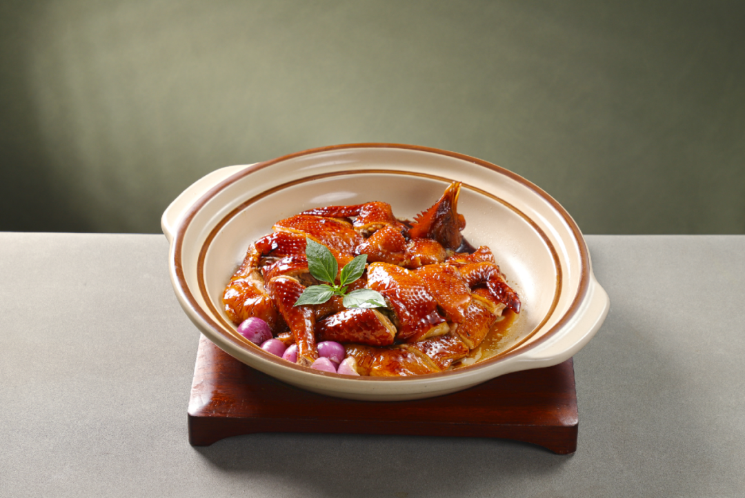 臻品三杯鸡:品种为贵妃鸡。成品呈现深褐金黄色,光泽透亮。口感上强调「皮爽、肉滑、骨香」,即便是骨髓处也带有淡淡的豉油鲜味。传统做法常用一杯生抽、一杯水、一杯米酒为基底,并加入八角、桂皮、香叶、甘草等香料。许多道地的「三杯鸡」会添加米酒,增加一种独特的清醇酒香,使层次更丰富。