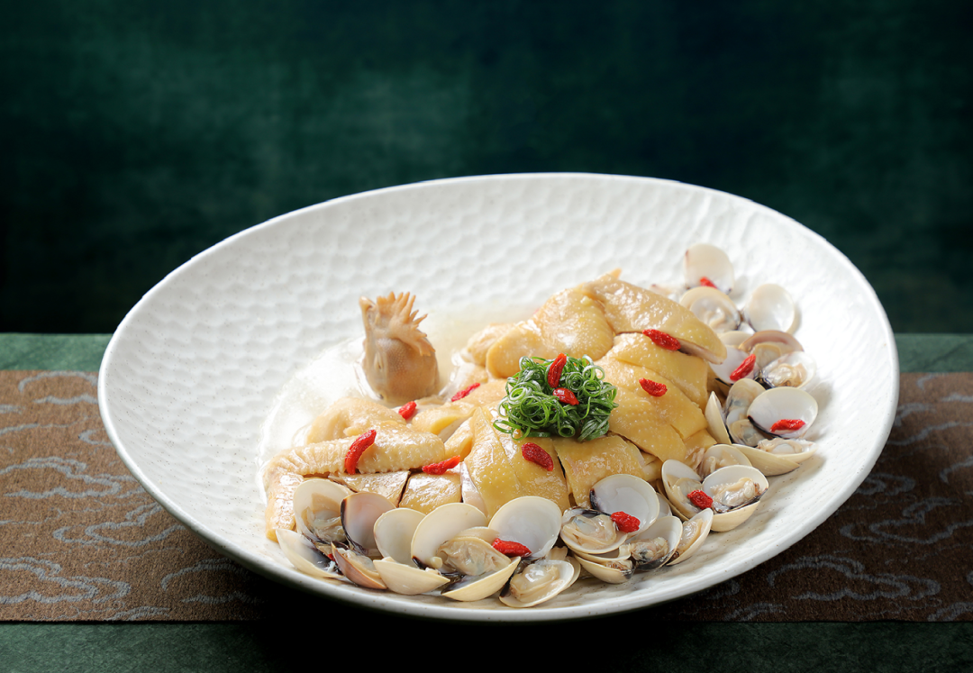 花雕金瑶贵妃鸡:甄选优质走地鸡,以陈年花雕慢浸入味,搭配金瑶提鲜增香。鸡肉皮嫩肉滑,酒韵醇厚绵长,入口鲜醇不腻,每一口都是粤式匠心的雅致风味。