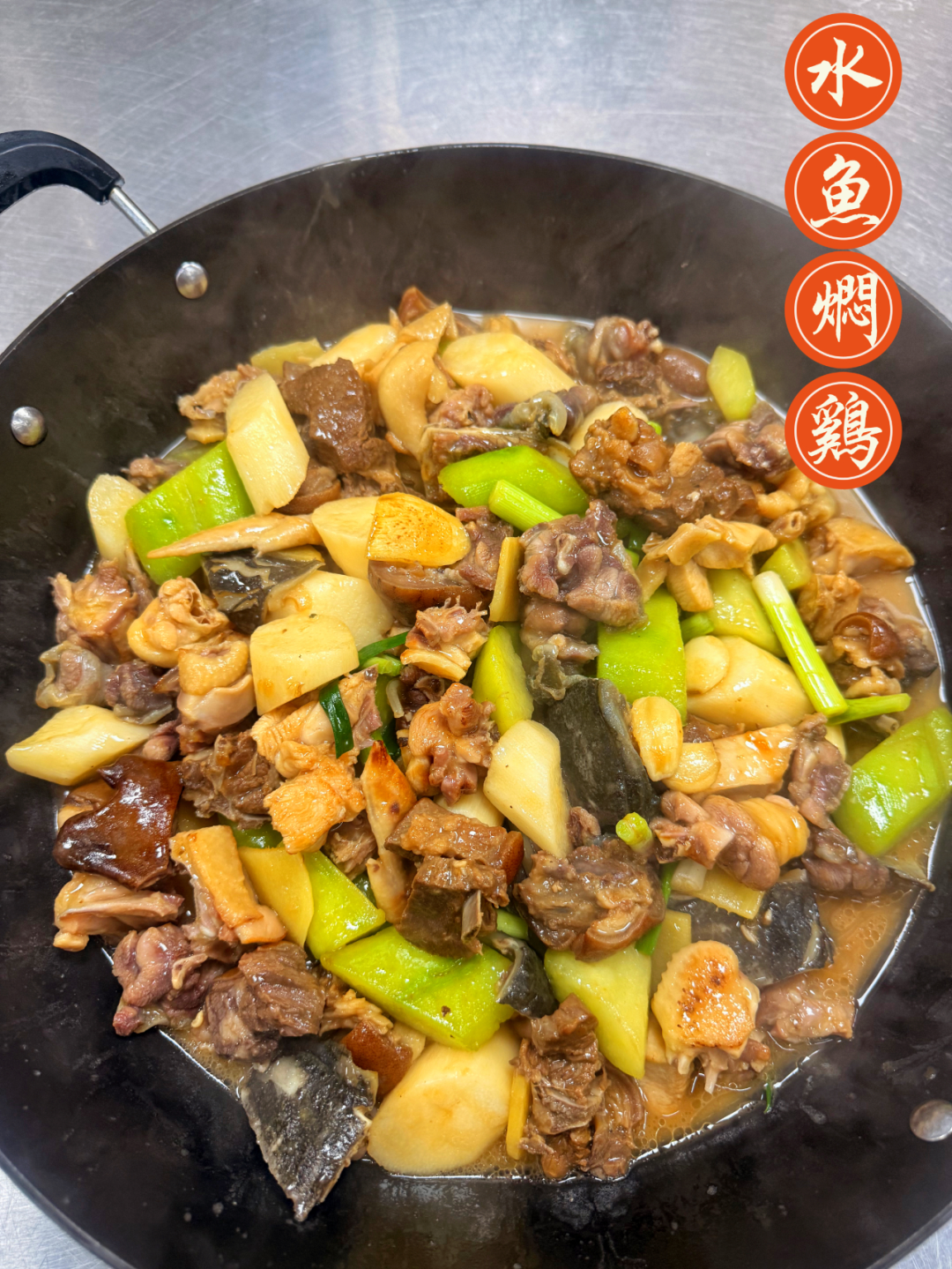 水鱼焖鸡:一锅双鲜,味中极品。甄选鲜活山坑水鱼配清远靓鸡,先煎后焖,原汁原味。水鱼裙边软糯黏唇,鸡肉紧实吸饱精华,胶质满满,入口即化。酱香浓郁带微辣,越焖越入味,每一勺汤汁都能拌三碗饭。滋补又解馋,懂吃的老饕进店必点——这锅“硬菜”,才是乐平待客的最高规格。