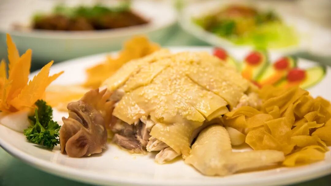 金牌醉翁鸡选用入口绵甜圆润的“九江十二坊”美酒提味,鸡肉香味浓,口感爽滑,散发出淡淡的南乳香气,即使滴酒不沾也会为之着迷。
