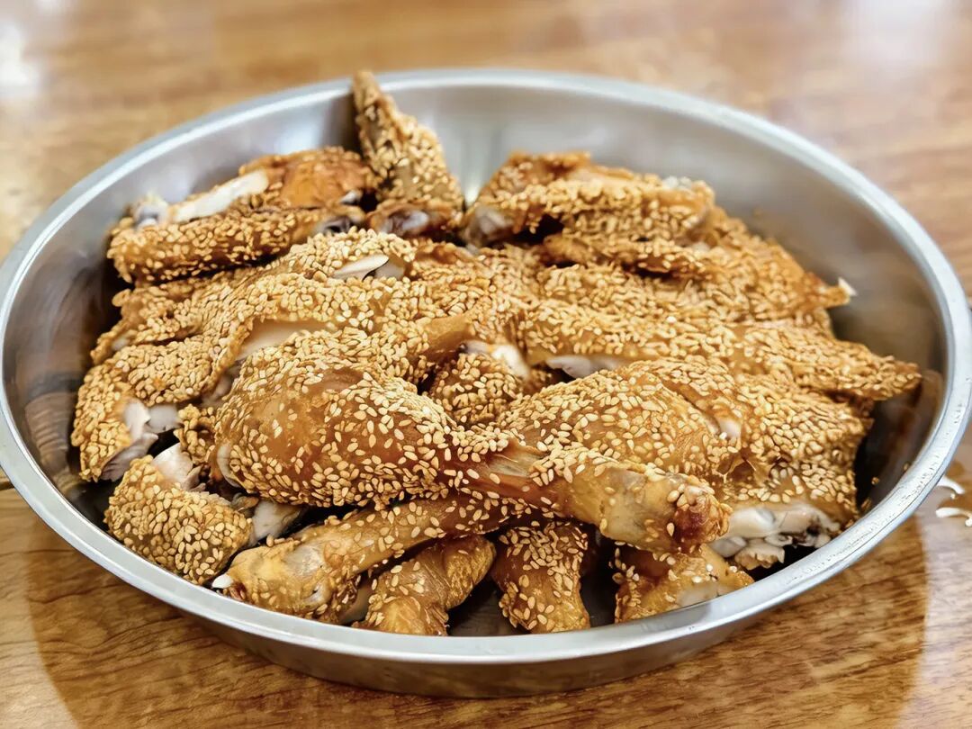 芝麻鸡以“外皮酥脆、芝麻焦香、鸡肉鲜嫩”著称。