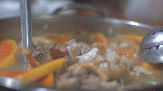 汤滚后5分钟即可捞鸡,先喝汤再吃鸡。由于鸡肉结实,汤面上很少浮油,鸡汤好喝有营养,鸡肉爽口弹牙。这般原汁原味,再蘸一点酱料,清、鲜、爽、嫩、滑,实属南海里水人心中最美好的那一味。