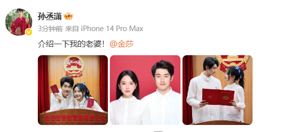 孙丞潇随即发文:介绍一下我的老婆!@金莎