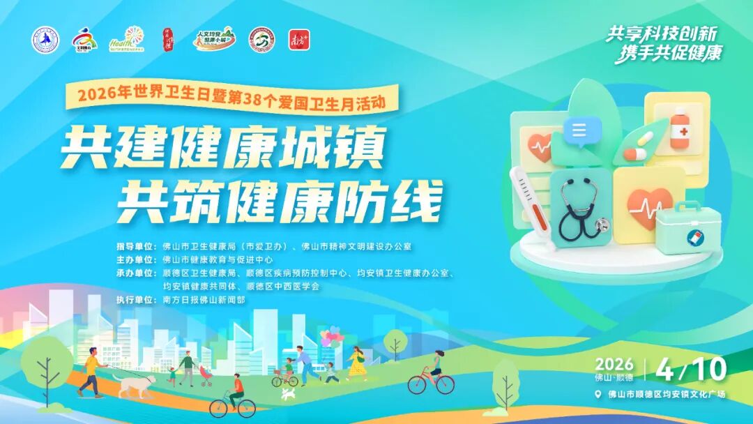 为迎接2026年“世界卫生日”和第38个“爱国卫生月”,一场以“共建健康城镇 共筑健康防线”为主题的线下宣传活动,将于4月10日(星期五)晚上7:00至9:00时,在顺德区均安镇文化广场举办。