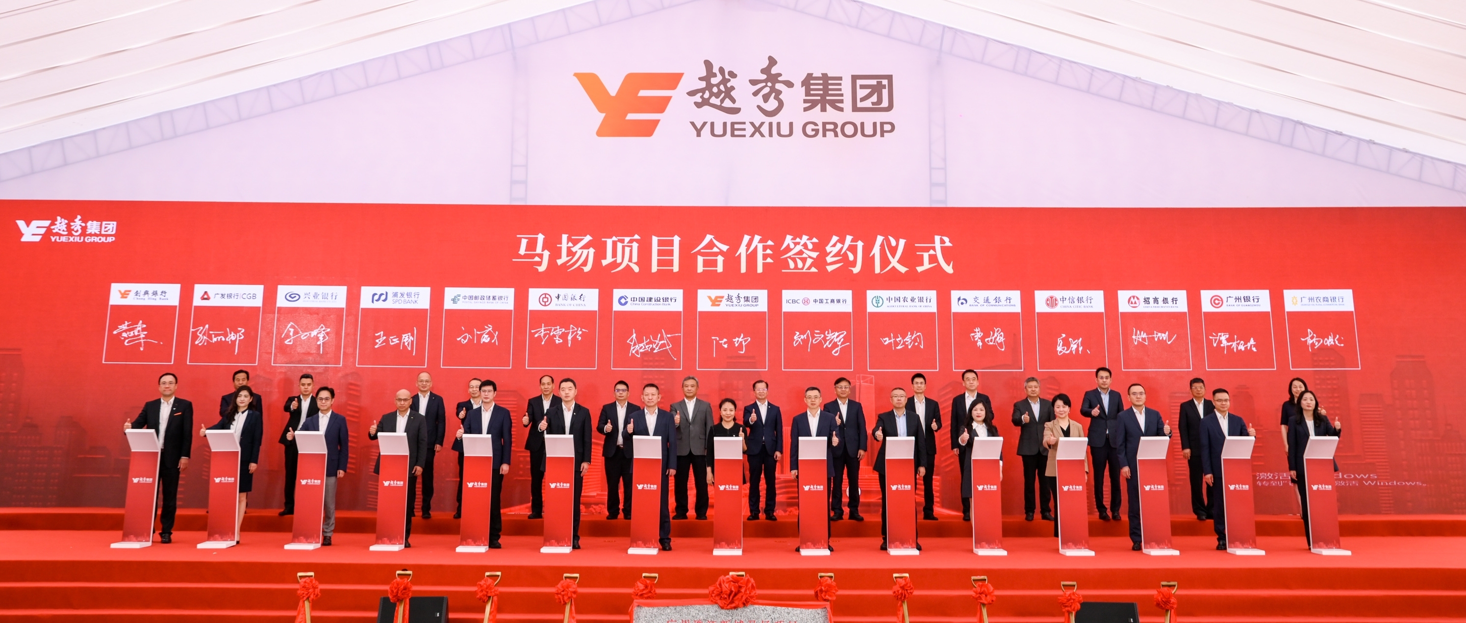 同时,工商银行、建设银行等14家银行与越秀集团签署战略合作协议,为项目提供金融授信支持。