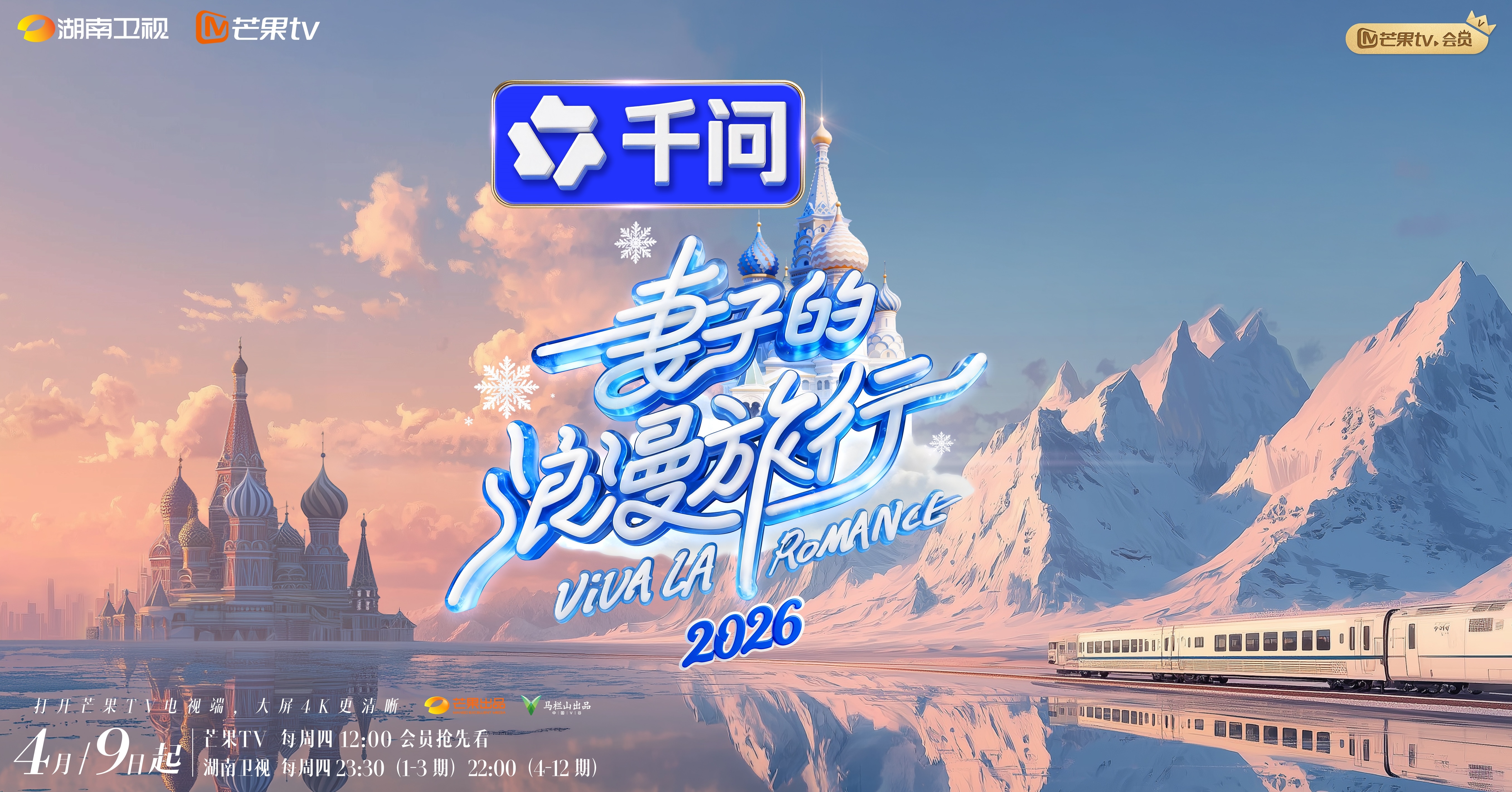 据悉,《妻子的浪漫旅行2026》自4月9日起每周四12:00芒果TV上线,23:30湖南卫视播出。