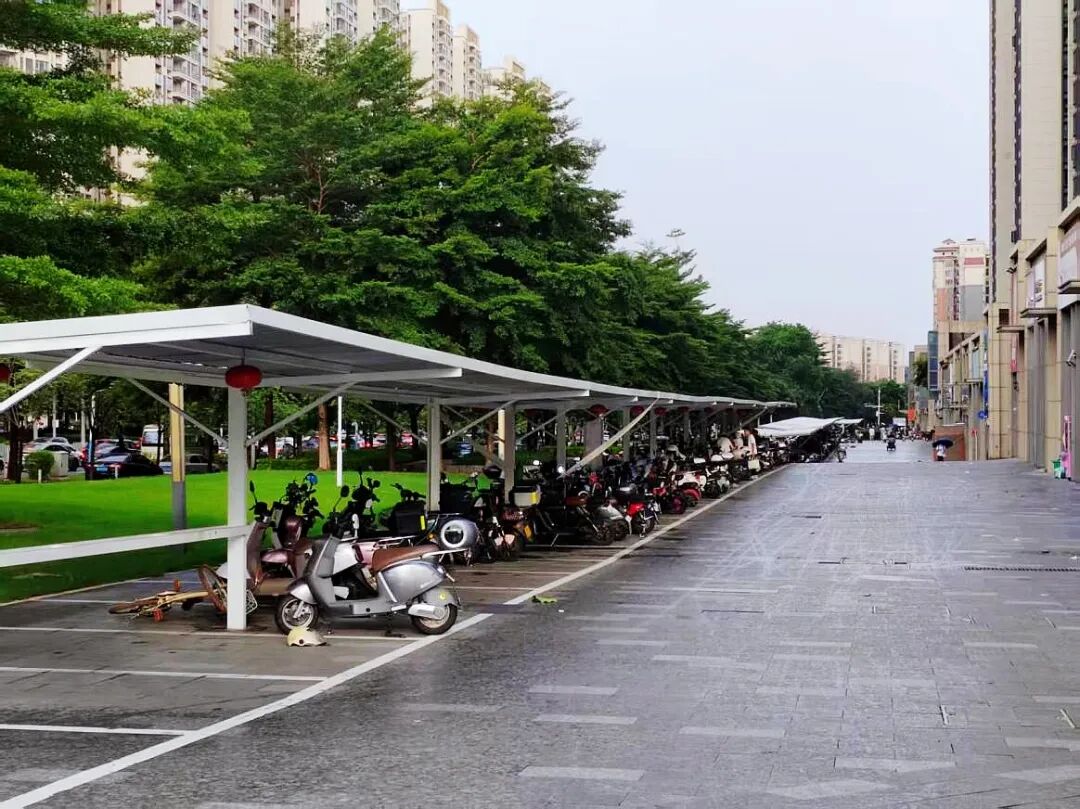 以往被占用的绿化带、人行道重现整洁有序,新建的统一车棚整齐美观,配套智能充电桩运行顺畅,公共区域整体品质实现大幅改善。