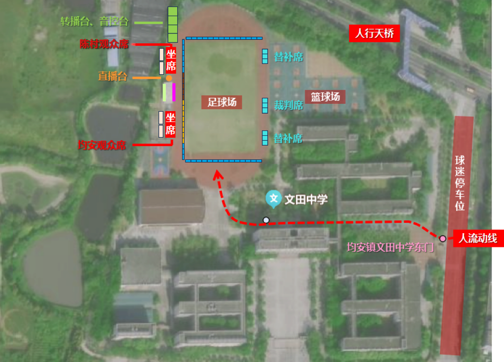 3.入场后,请按照下方指引图进入观赛场地,然后在指定区域自行选座、有序观赛。观众席距离较近,建议12-60周岁观众入场。