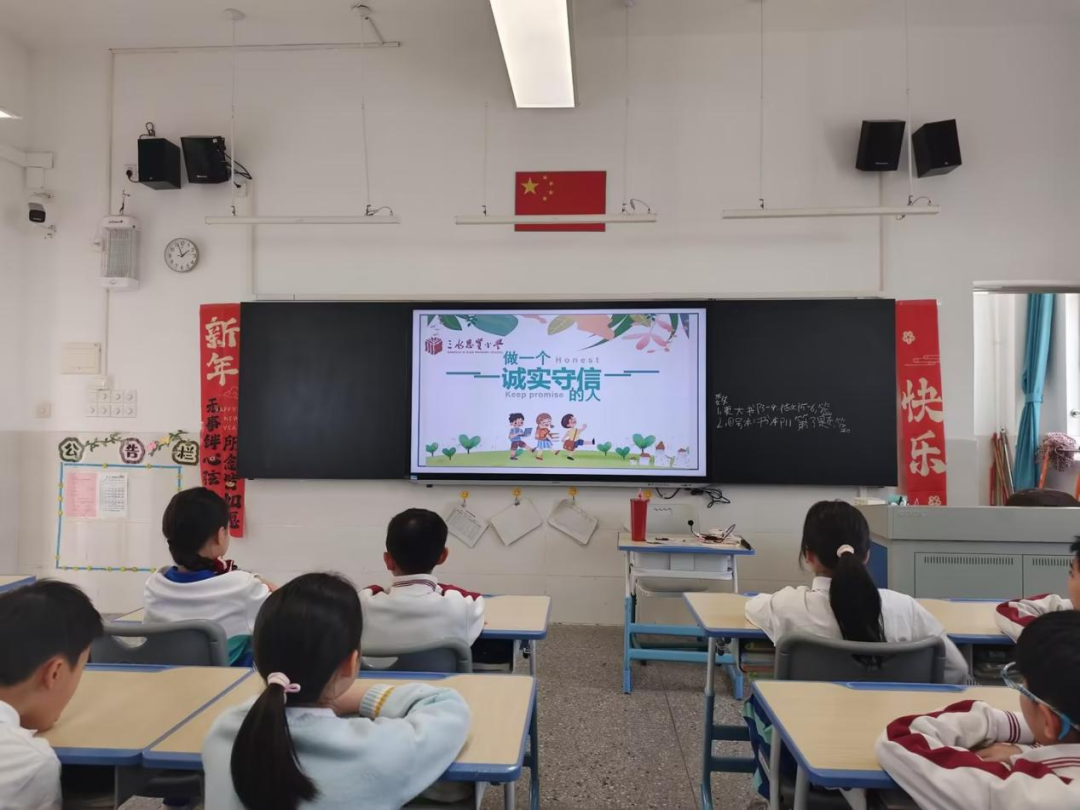 随后,各班级召开诚信教育主题班会,班主任结合视频内容与校园生活,组织同学们开展诚信讨论、故事分享、承诺宣誓等活动。班会课上,同学们积极交流对诚信的理解,分享身边的诚信小事,纷纷表示要以雷锋为榜样,把诚信融入日常言行,自觉践行文明公约。各班还通过发动学生制定班级诚信约定、张贴诚信标语等方式,营造“人人讲诚信、事事守信用”的浓厚班级氛围。