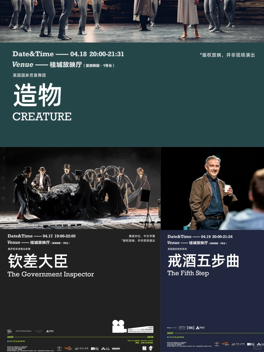 桂城放映厅将精选3部国际优质戏剧作品进行高清放映。即便无法亲临世界各地的剧场,也能在此领略前沿戏剧的魅力,享受沉浸式的观剧体验。