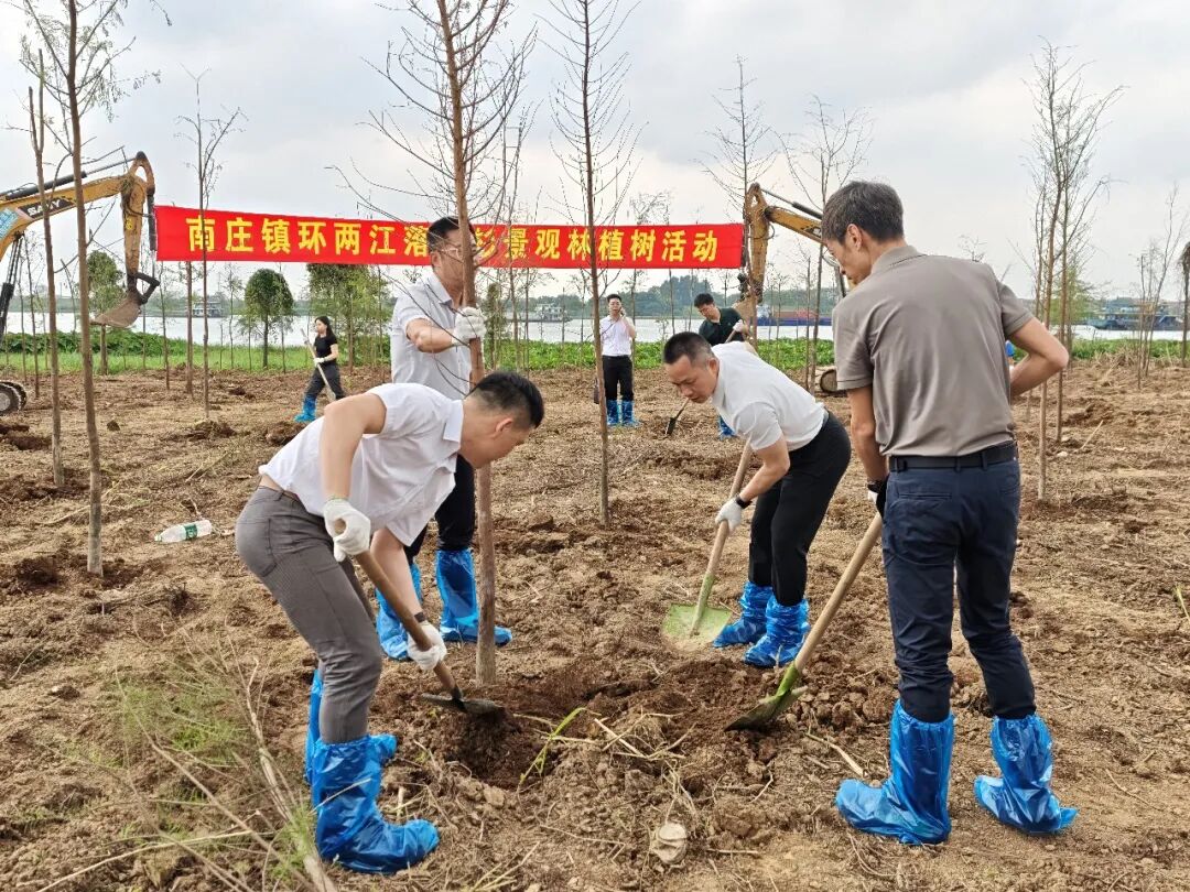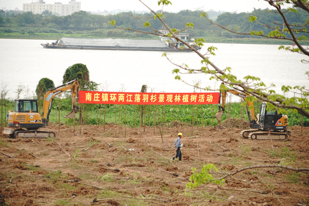 4月9日下午,南庄码头外滩地一派热火朝天的景象。南庄镇组织开展环两江落羽杉景观林植树活动,首批1000棵落羽杉树苗在此片区“安家落户”,后续还将再种1000棵,共计种植2000棵。