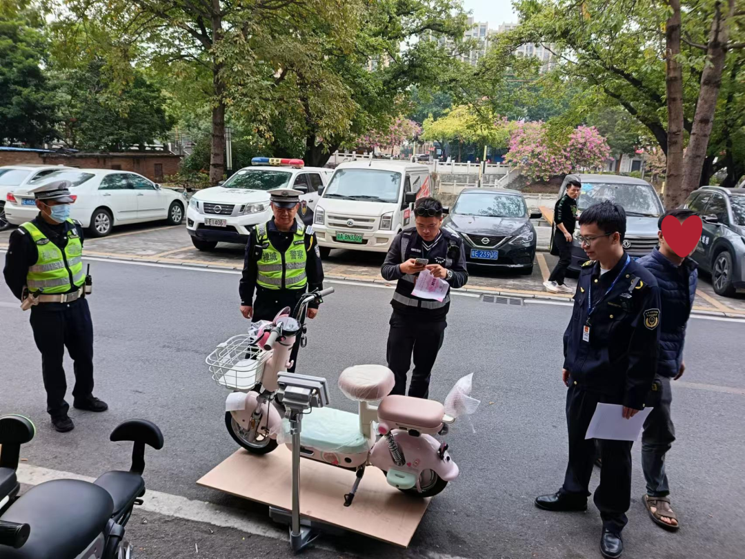 南庄镇道路交通安全综合治理工作专班还牵头,联合市监、公安交警、佛山质计中心等单位,对全镇电动自行车销售门店、维修门店开展全覆盖检查。执法人员采取“现场核查+快筛抽样”方式,逐一核对产品合格证、3C认证与实物的一致性,重点检测鞍座尺寸、整车质量、蓄电池防篡改等关键指标,确保符合新国标要求。