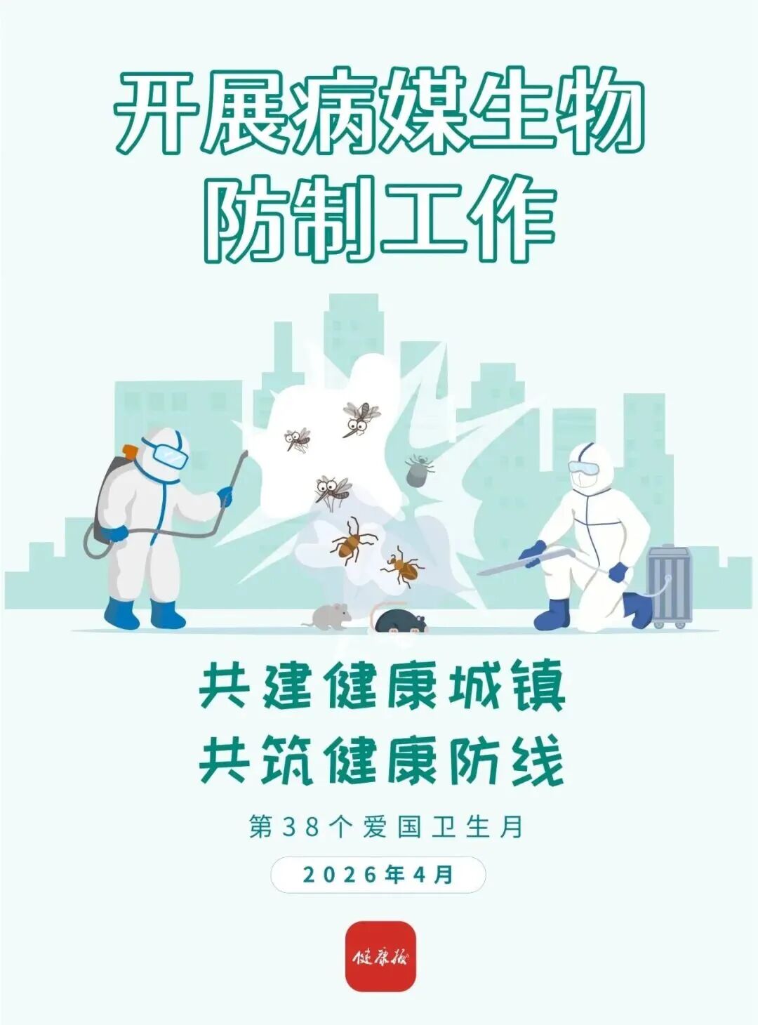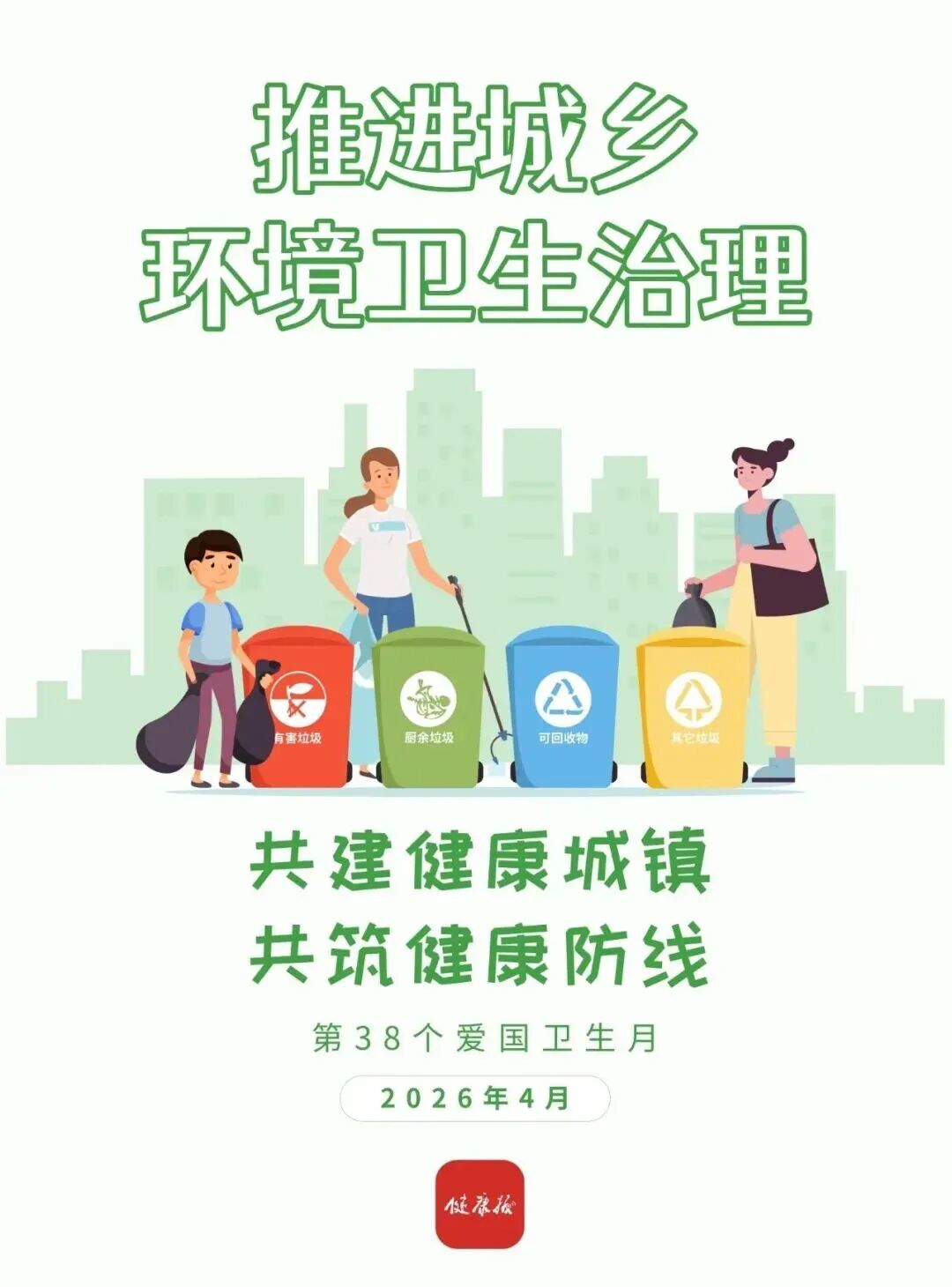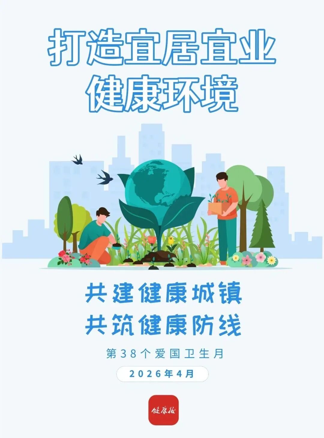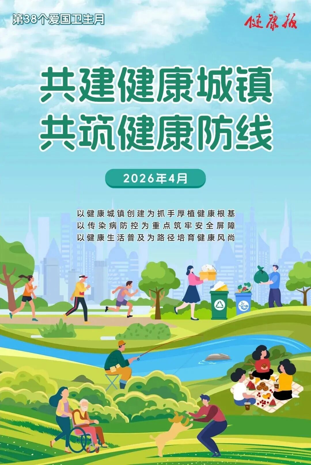 2026年4月是第38个爱国卫生月今年的活动主题是“共建健康城镇 共筑健康防线”