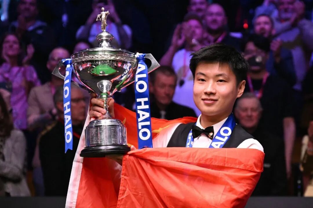赵心童:当时那一刻,其实到最后握手的时候,我脑袋都是空白的。因为虽然我那会儿已经赢下了比赛,但其实在赛前或者比赛中间,我脑子也在一直乱想,到底最后会发生什么。到最后我把黑球打完,跟裁判和对手握手的时候,内心已经激动得不行了。我的经纪人把国旗递给我的时候,我特别激动,但没有特别表现出来。在我把国旗举出来绕场一周给观众看的时候,我内心对自己有点小感动,那时候的印象比较深刻。