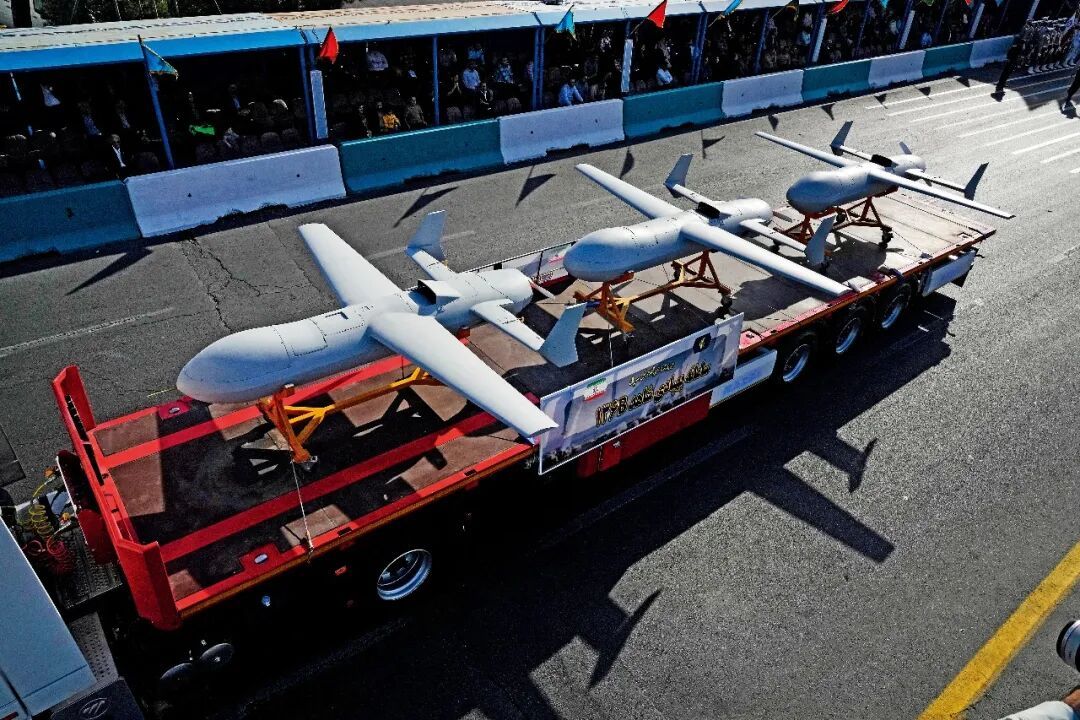 2024年9月21日,伊朗武装部队阅兵式上展示的“沙希德-136b”无人机。本文图/视觉中国